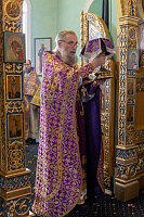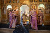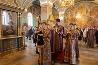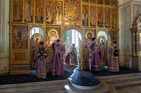 Его Высокопреосвященству сослужили клирики собора.
