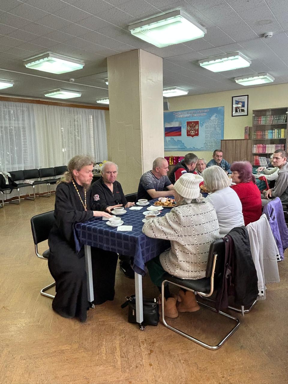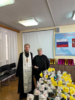 17 апреля, в Великий Четверг, клирик Михаило-Архангельского храма г. Коломна ответственный по вопросам семьи, защиты материнства и детства Коломенской епархии священник Димитрий Шаповалов совместно с представителями администрации г.о. Коломна посетил пункт размещения беженцев, расположенный в ДДО Непецино. Отец Димитрий совершил краткий молебен и заранее освятил куличи и яйца, которые были подарены пожилым беженцам из Луганской народной республики. Затем за чаепитием состоялась беседа о Великом Четверге, Страстях Христовых и Его Воскресении, и ответы на вопросы.