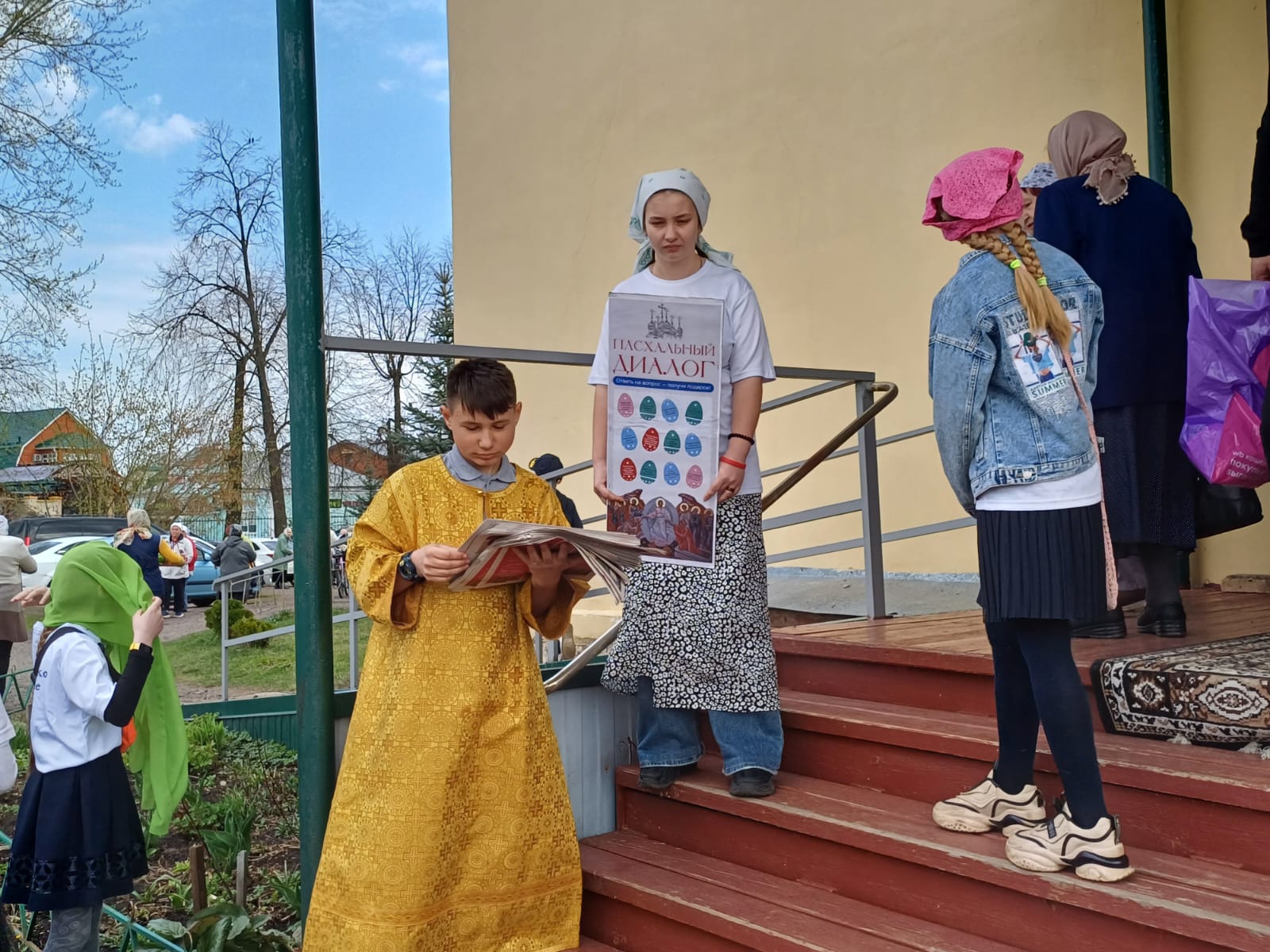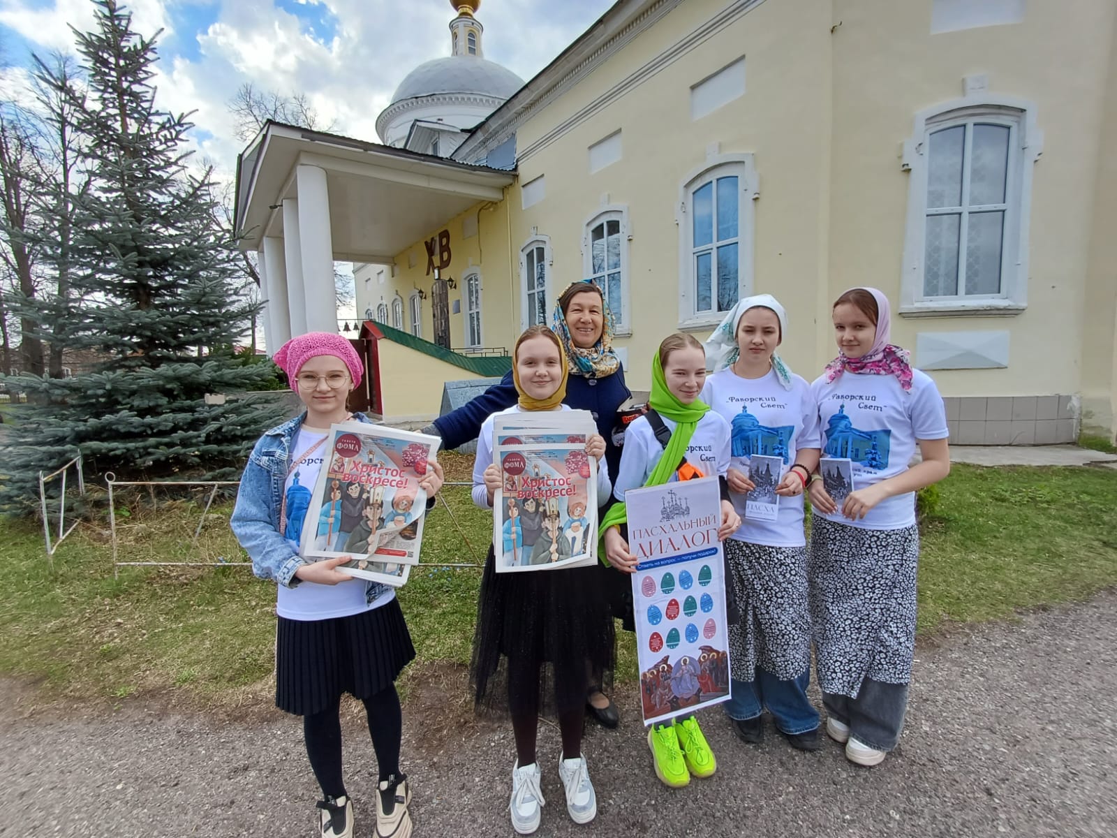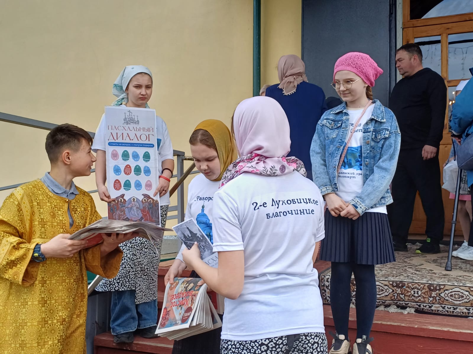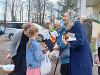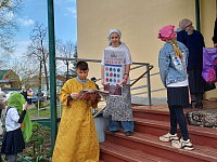 В Великую субботу воспитанники воскресной школы Преображенского храма п. Белоомут под руководством миссионера-катехизатора Сундаревой Светланы Анатольевны провели Пасхальную акцию «Пасхальный диалог». Людям предлагалось ответить на вопрос о Пасхальных традициях и самом празднике и получить за правильный ответ подарок. Также наши юные миссионеры раздавали листовки с информацией о празднике и газету «Фома».