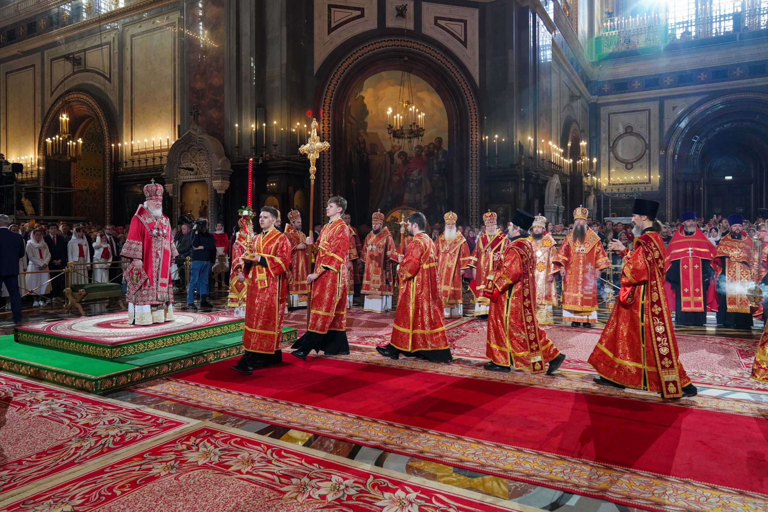 20 апреля 2025 года, в праздник Светлого Христова Воскресения, Святейший Патриарх Московский и всея Руси Кирилл совершил Пасхальную великую вечерню в кафедральном соборном Храме Христа Спасителя в Москве.