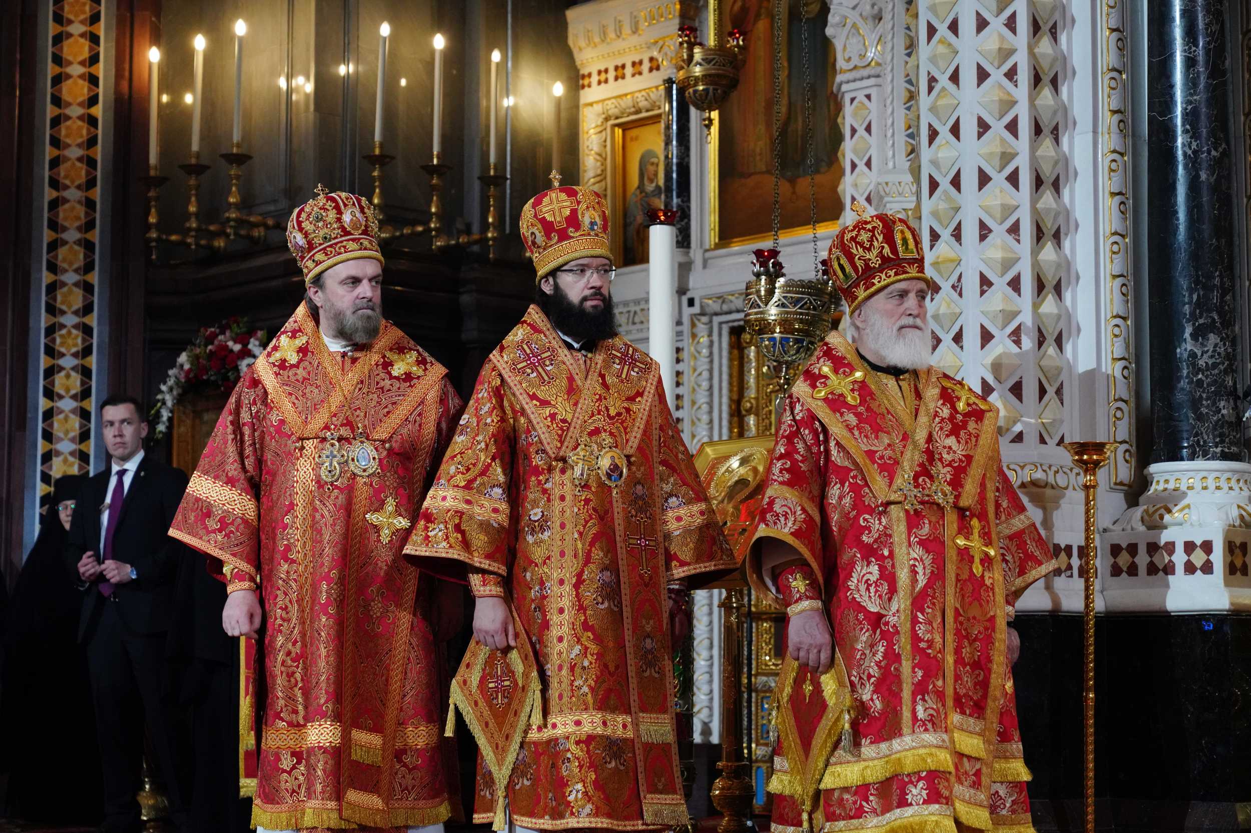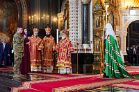 Богослужебные песнопения исполнил Патриарший хор Храма Христа Спасителя (регент — И.Б. Толкачев).