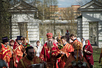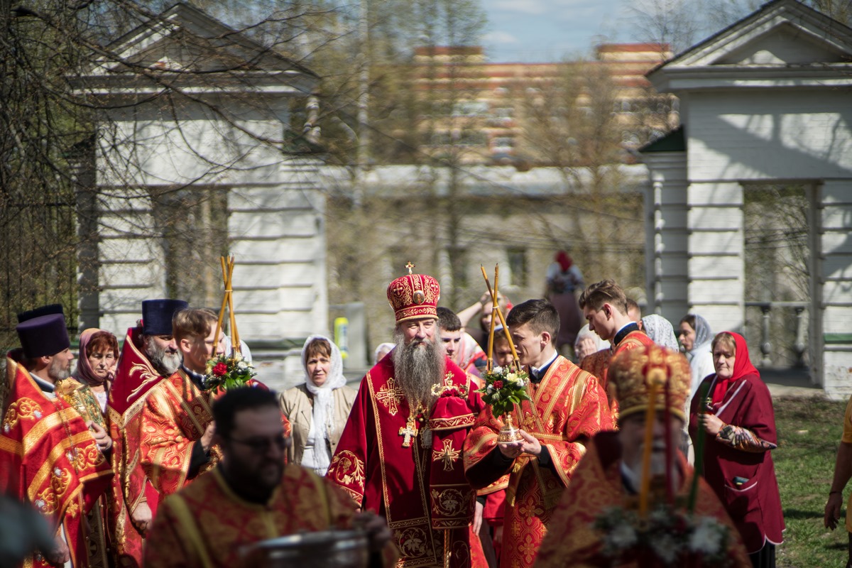 По заамвонной молитве вокруг собора был совершён традиционный крестный ход в честь Пасхи Христовой.