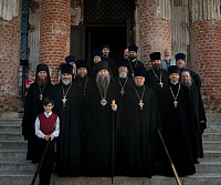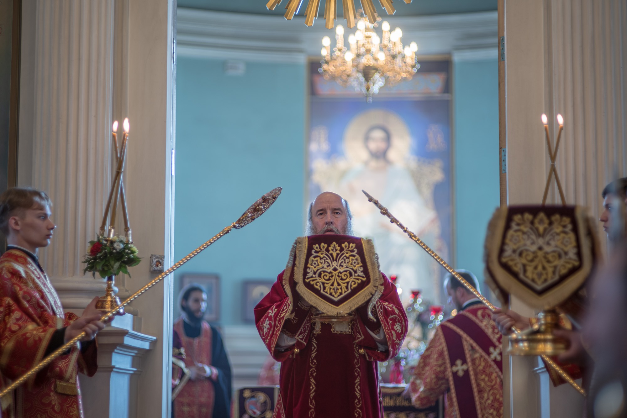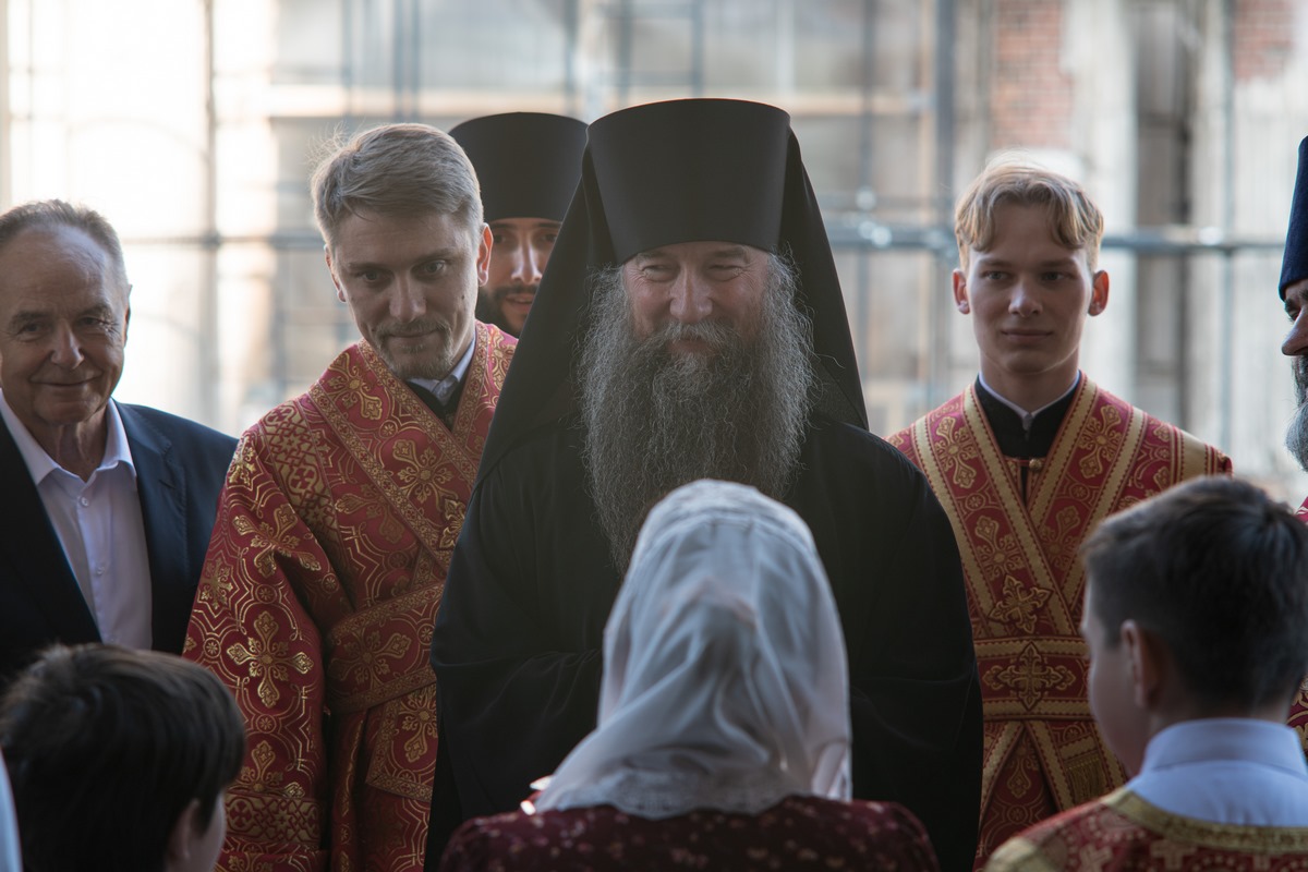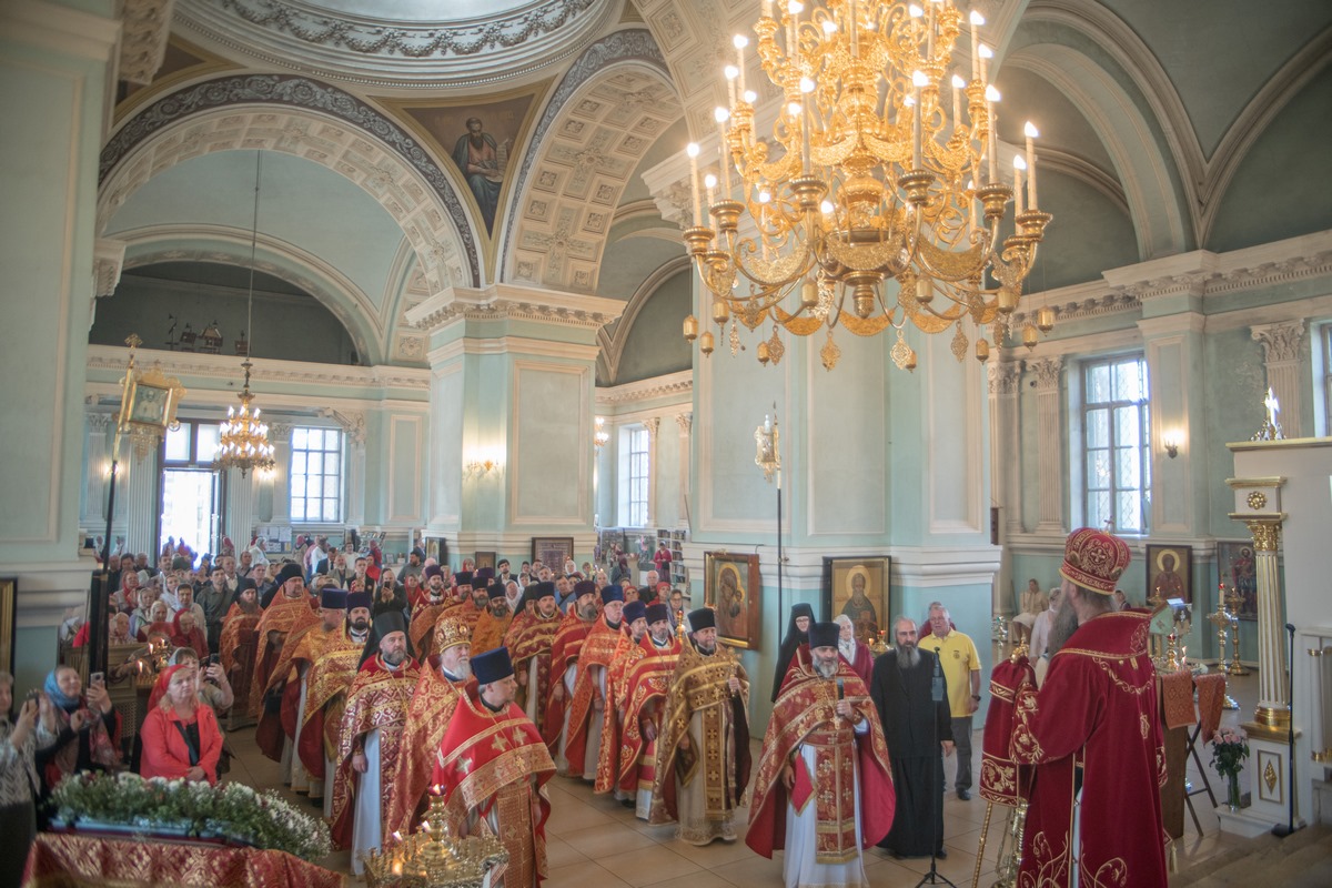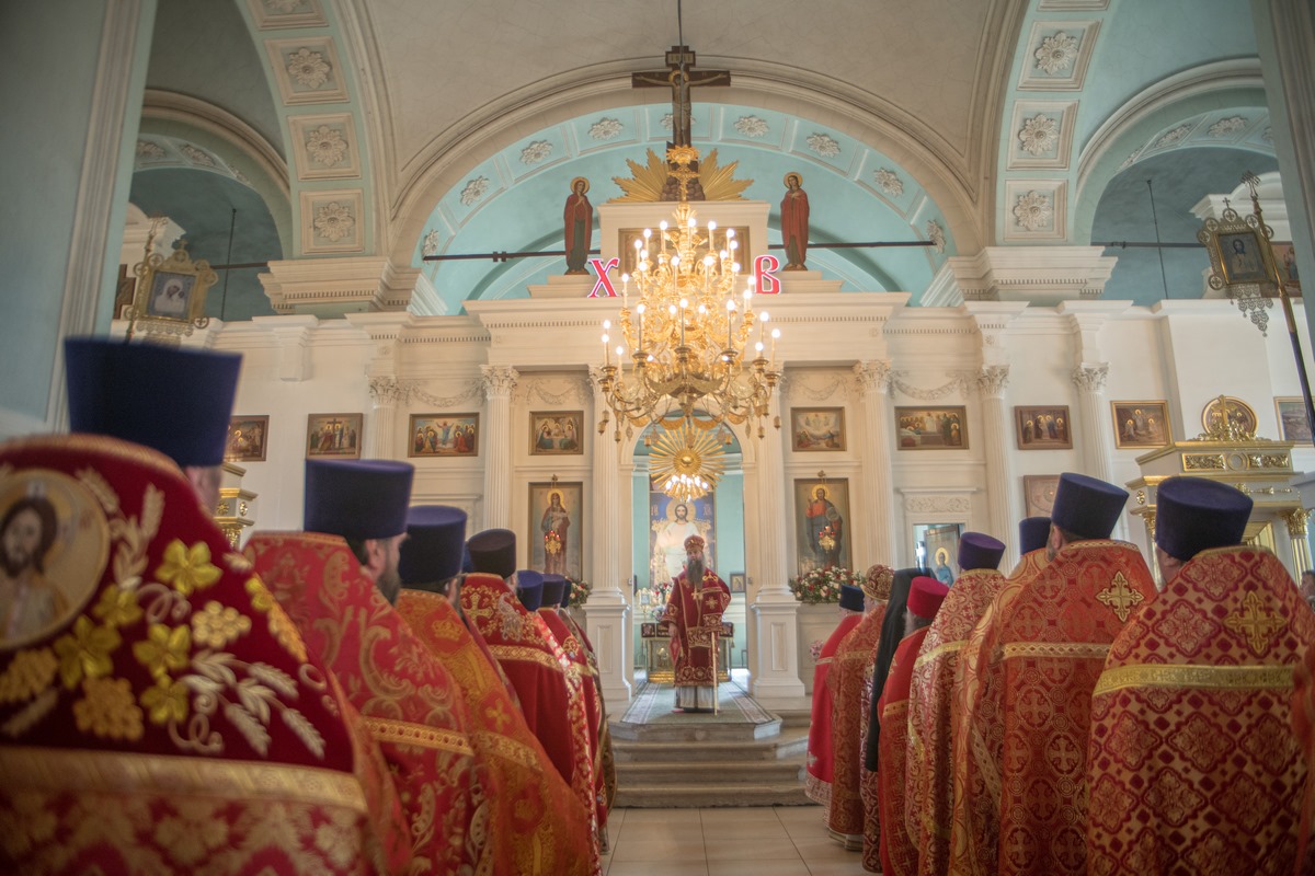 Его Преосвященству сослужили: секретарь Сергиево-Посадского епархиального управления, благочинный Ивантеевского церковного округа протоиерей Иоанн Монаршек; благочинный Яхромского церковного округа, настоятель Троицкого собора иерей Сергий Бернацкий; благочинные церковных округов: Дмитровского – протоиерей Афанасий Чорногуз, монастырей Сергиево-Посадской епархии – игумен Алексий (Горлычев), Дубненско-Талдомского – протоиерей Павел Мурзич, Рогачёвского – иерей Сергий Сафронов; настоятель Борисоглебского мужского монастыря г. Дмитрова игумен Августин (Шорников); духовенство Сергиево-Посадской епархии.