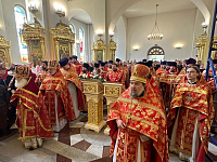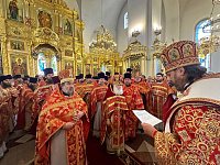 Его Высокопреосвященству сослужили клирики епархии.