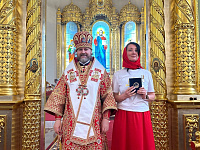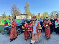 В конце Литургии был совершен крестный ход с чтением Евангелия и окроплением молящихся святой водой.