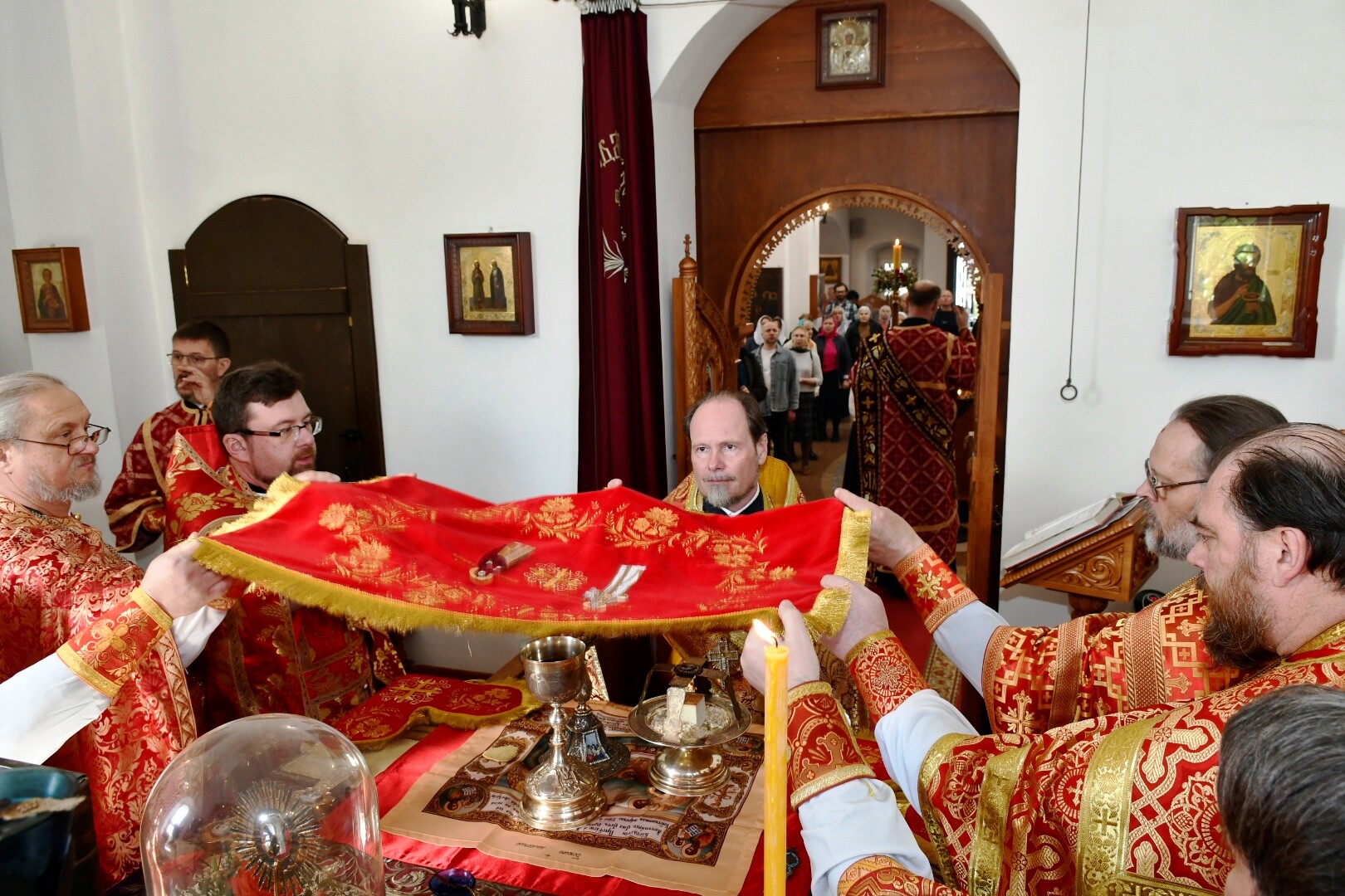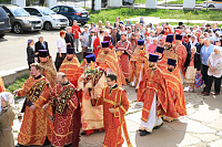 24 апреля, в четверг Светлой седмицы в Преображенском храме г. Долгопрудный состоялось соборное служение Божественной литургии, которое возглавил благочинный Долгопрудненского церковного округа протоиерей Андрей Хмызов. Ему сослужило духовенство Долгопрудненского благочиния. Затем состоялся традиционный крестный ход.