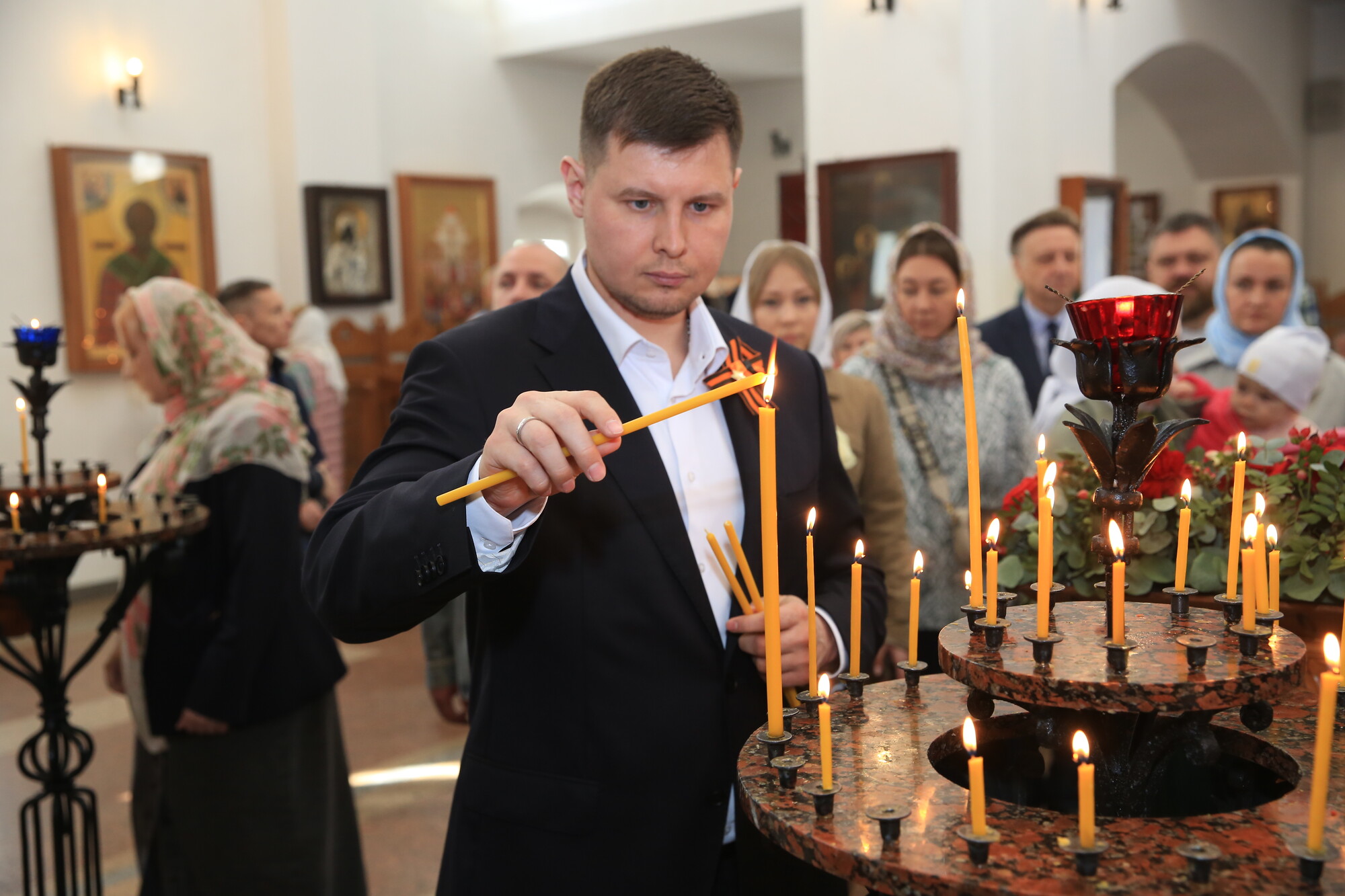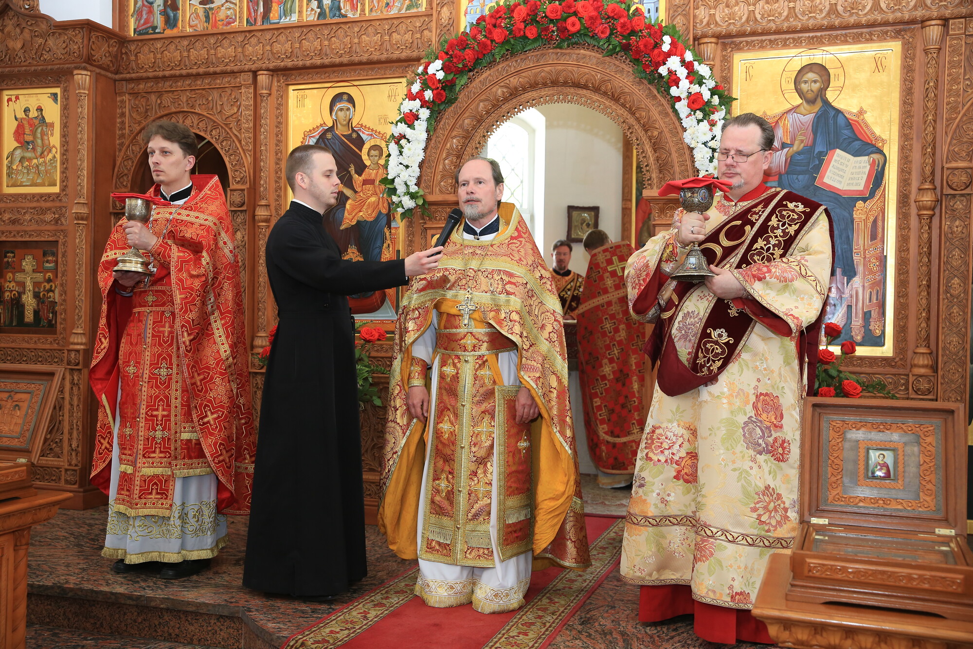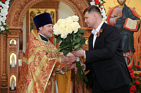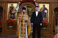 В богослужении принял участие глава г.о. Долгопрудный Истомин Р.М. Глава города поздравил духовенство и прихожан с продолжающимся праздником Пасхи Христовой. Отец благочинный и Роман Михайлович обменялись пасхальными подарками.
