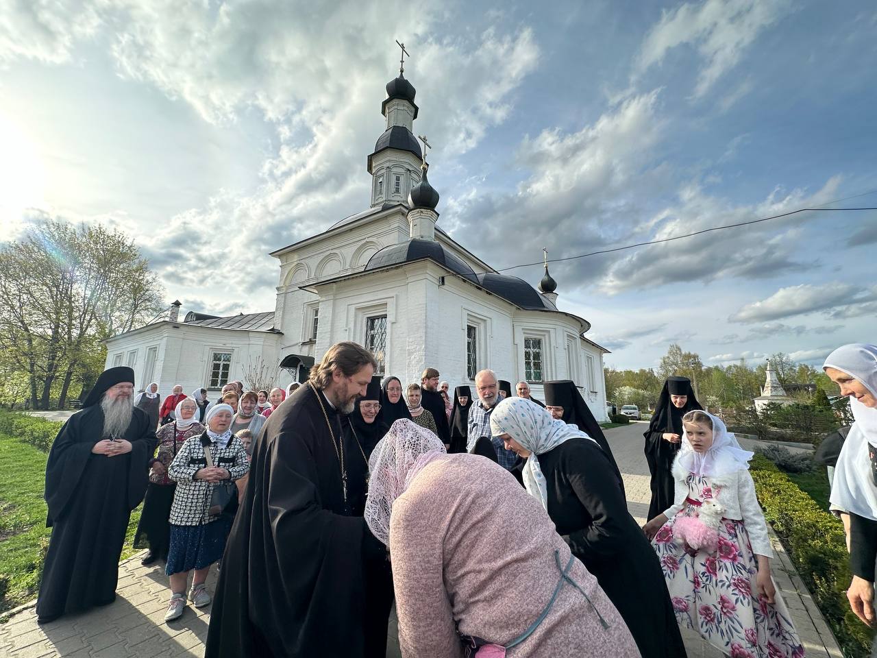 24 апреля 2025 г., накануне Светлой Пятницы и праздника иконы Божией Матери «Живоносный Источник» Высокопреосвященнейший Фома, архиепископ Одинцовский и Красногорский, совершил Пасхальную утреню в Успенском Колоцком женском монастыре.