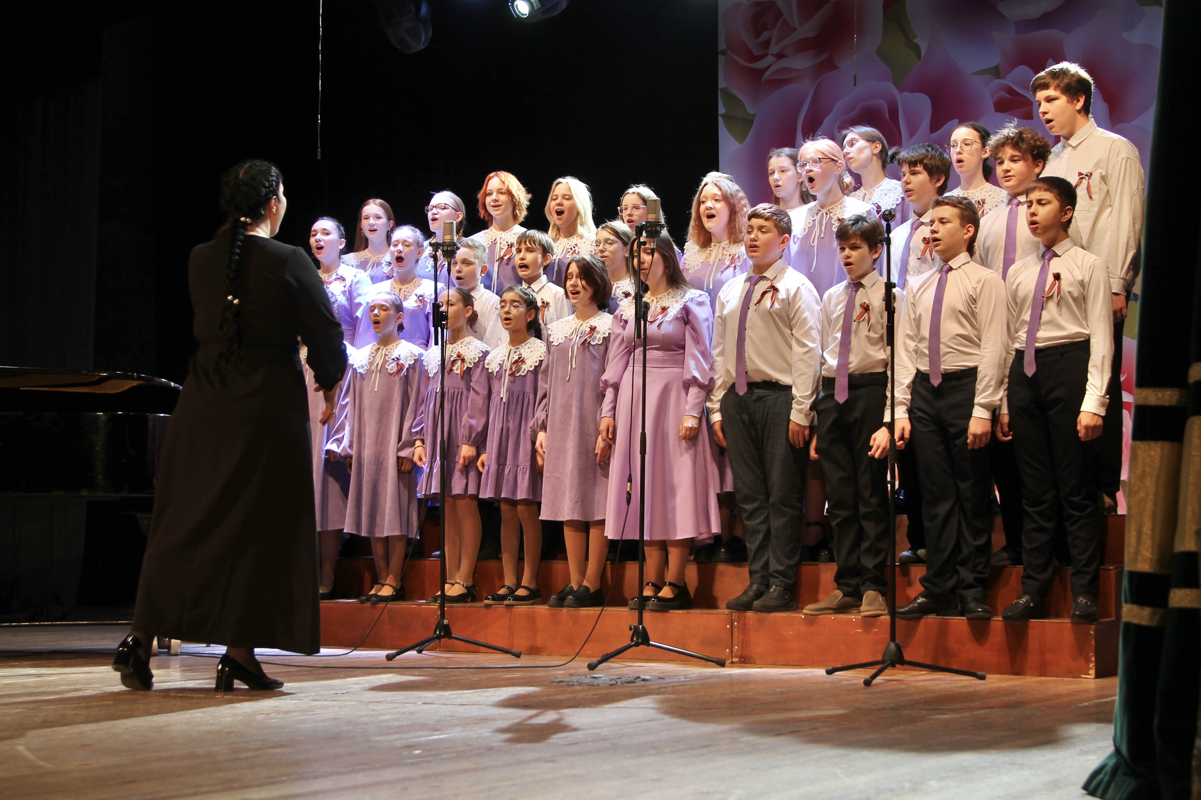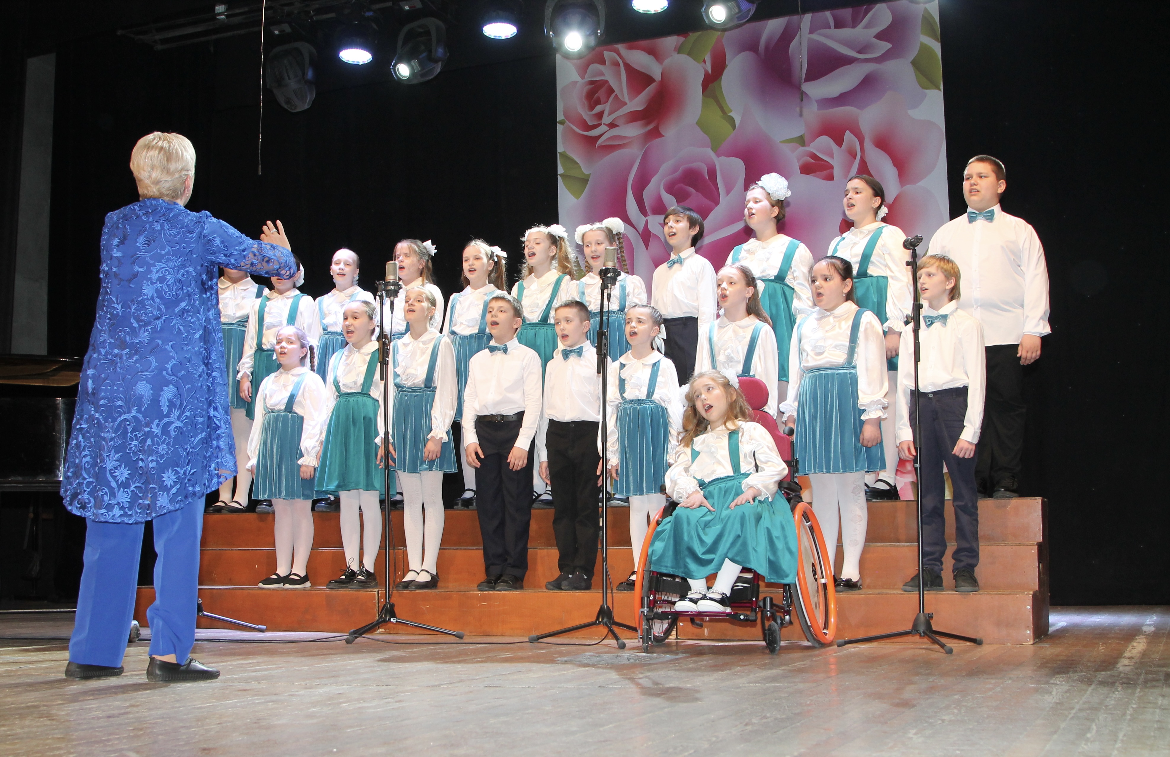 Мероприятие было открыто выступлением младшего хора «Детство» с песнями «Приди поскорее, весна», «Коза-дереза» и «Детство – это я и ты». На сцене также прозвучали французская колядка, «Нежность» и «Не бывает неба лучшего» в исполнении вокального ансамбля «Акварель». Солистка Ева Миндикулова проникновенно исполнила «Песню о берёзке» из оперетты «Весна поёт».