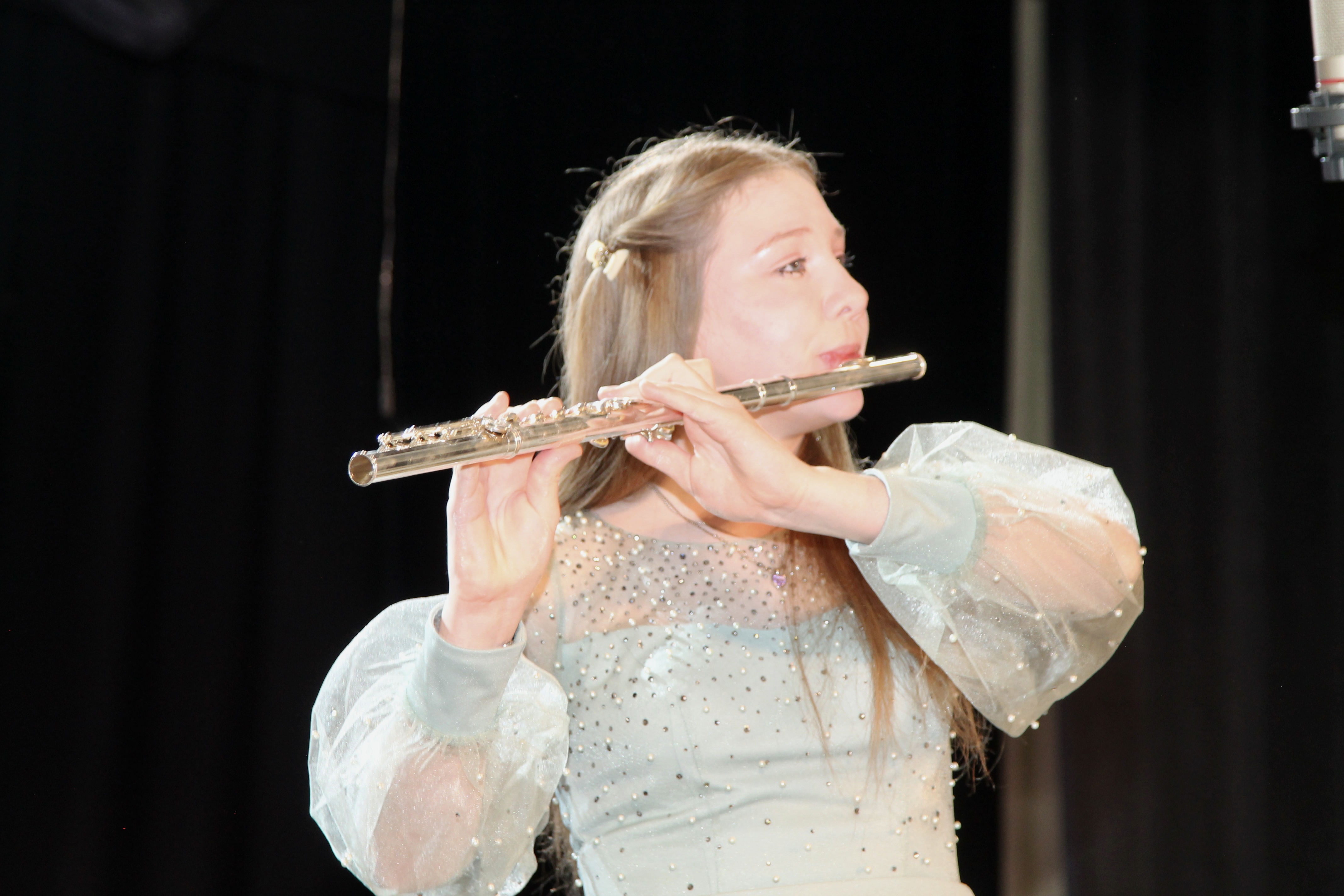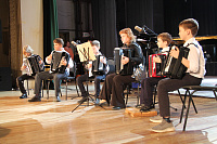 Публику восхитило звучание музыкальных инструментов. Егор Мельник уверенно исполнил на фортепиано этюд № 9 соч. 72 d-moll М. Мошковского, а Ирина Долгова – «Итальянскую польку» С. Рахманинова. Арина Залесина покорила публику «Концертино» С. Шаминад на флейте. Завершил парад инструментов ансамбль баянистов-аккордеонистов «Гармония» с бравым «Попурри на темы песен Великой Отечественной войны».