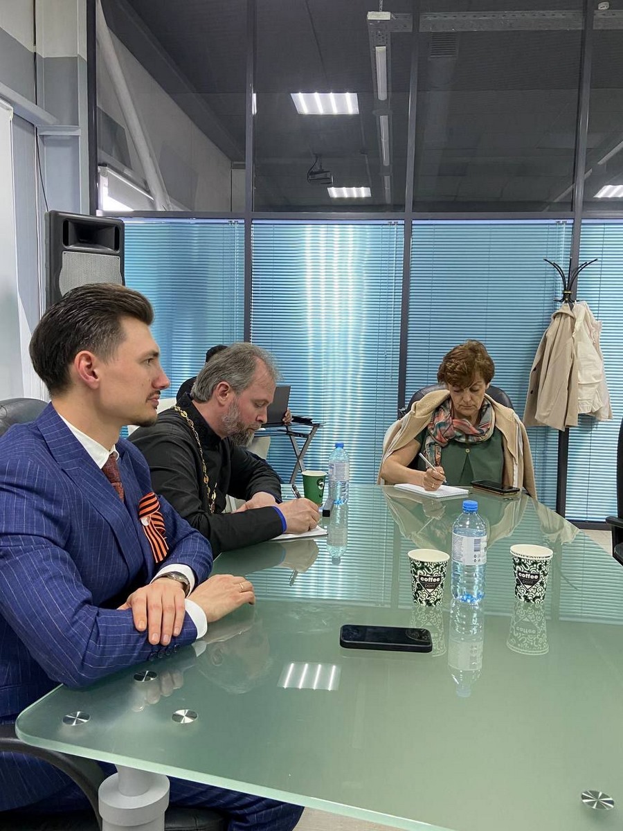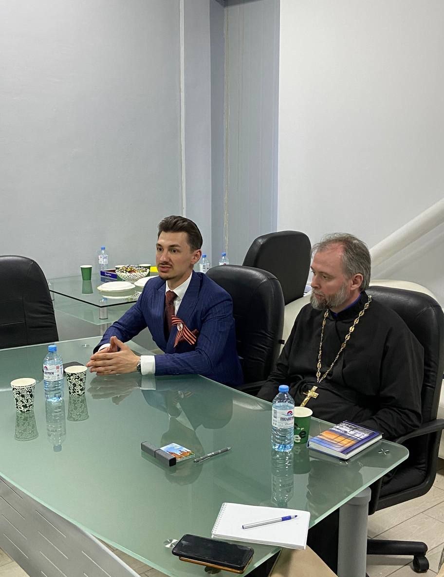 В обсуждении перспектив сотрудничества и планов на лето приняли участие проректор по молодёжной политике и воспитательской деятельности вуза А. В. Вотинцев и клирик Покровского храма иерей Дионисий Объещик.