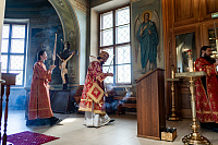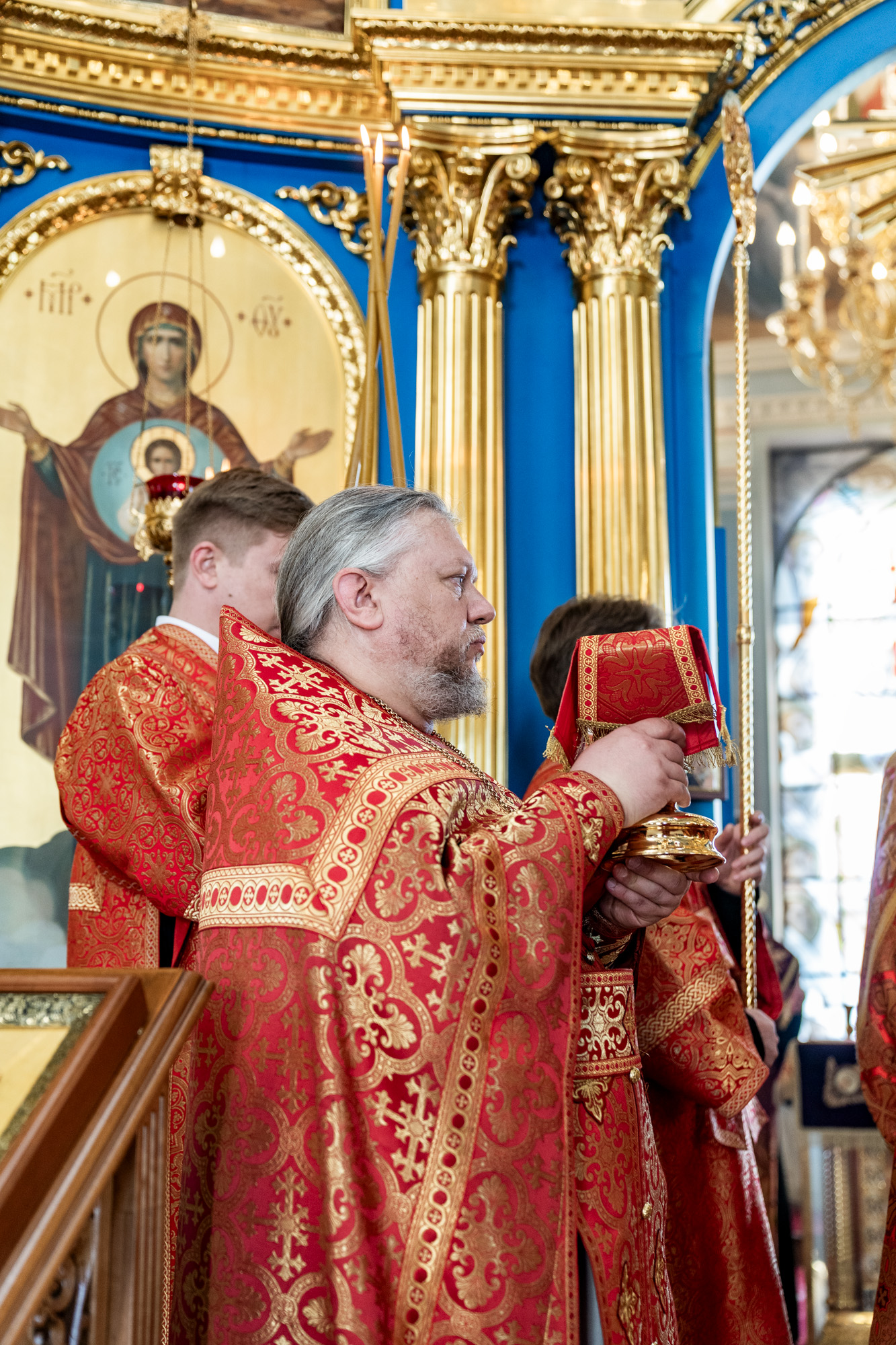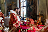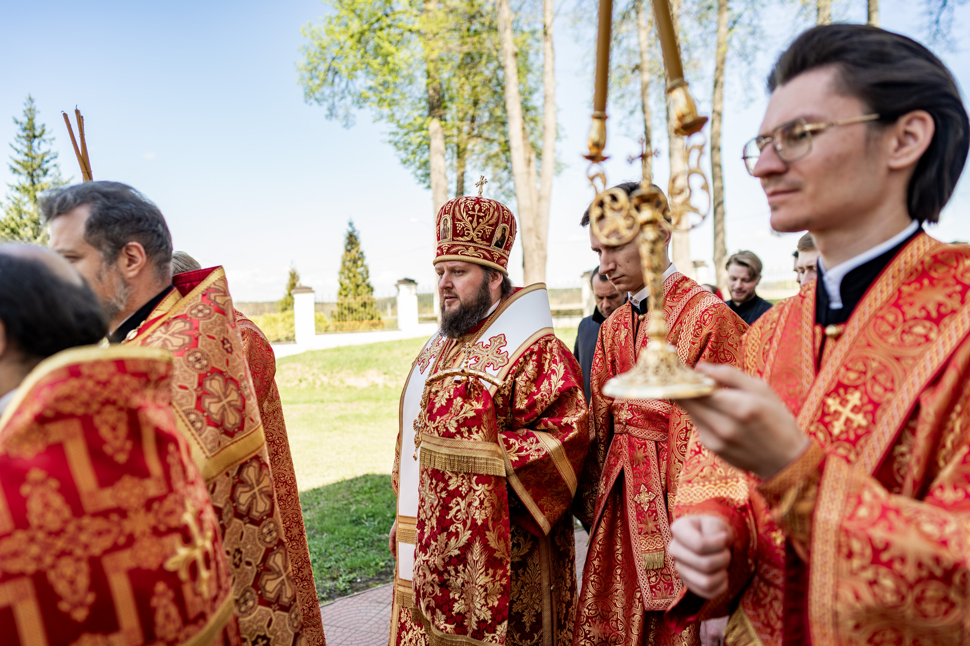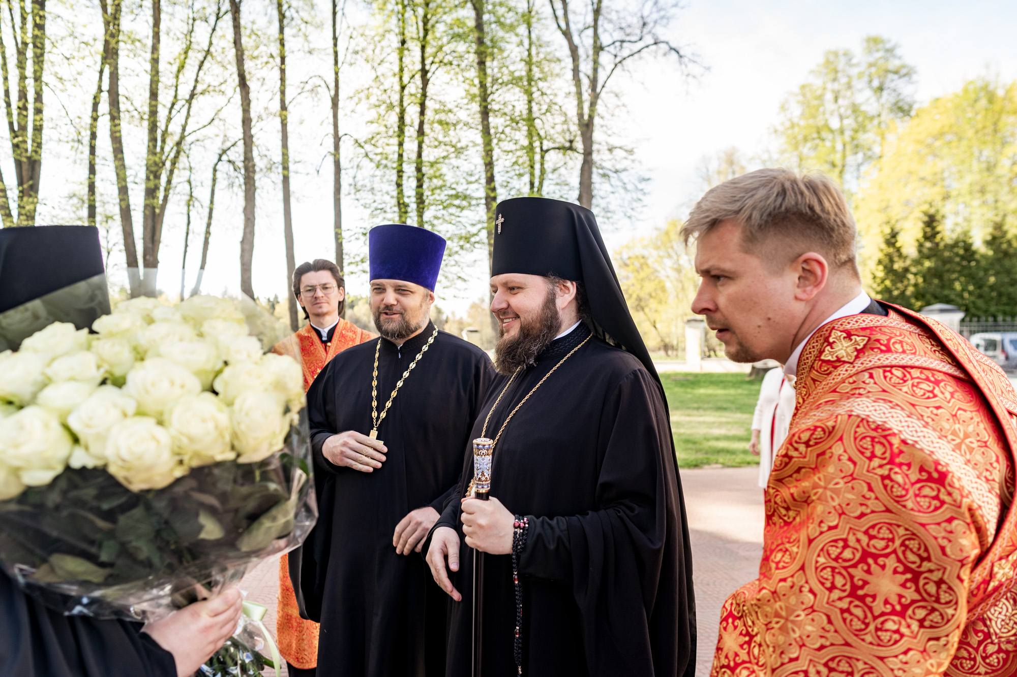 Его Высокопреосвященству сослужили секретарь Подольского епархиального управления иерей Константин Семёнов, настоятель подворья, казначей монастыря иеромонах Артемий (Подмосковный) и насельник обители иеромонах Гурий (Карпов). Диаконский чин возглавил иеродиакон Давид (Папирник).