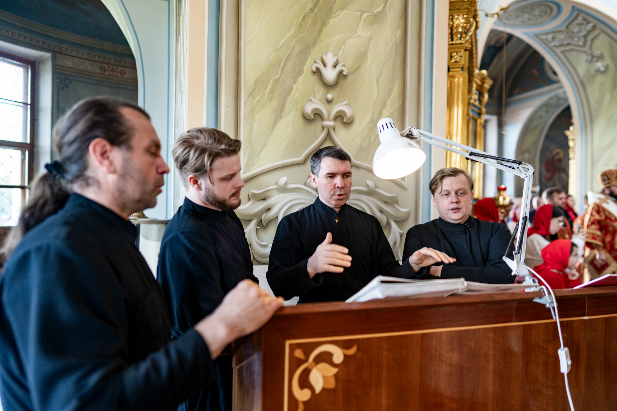 Богослужебные песнопения исполнил хор «Держава» под управлением регента Ильи Мельникова.