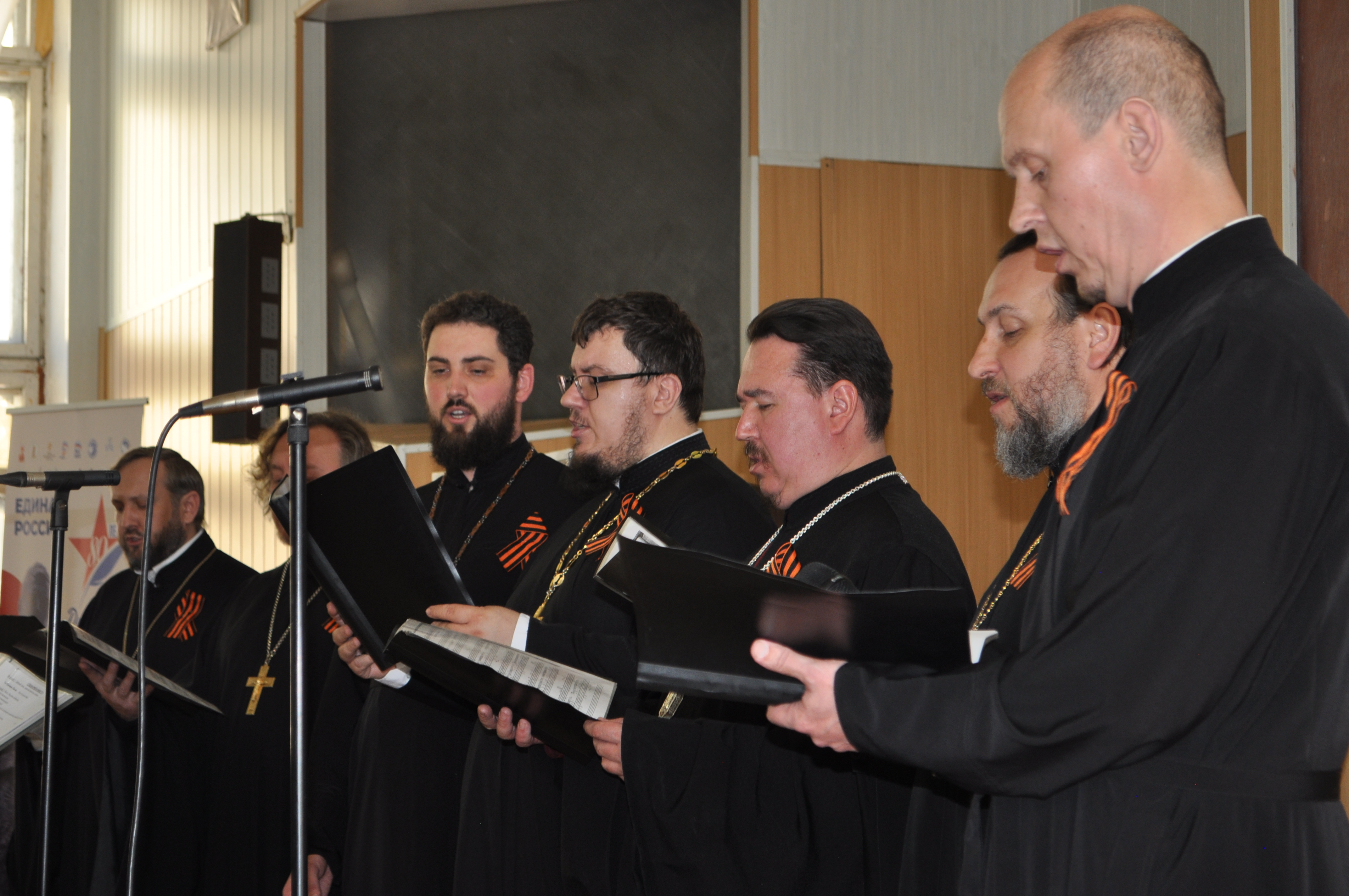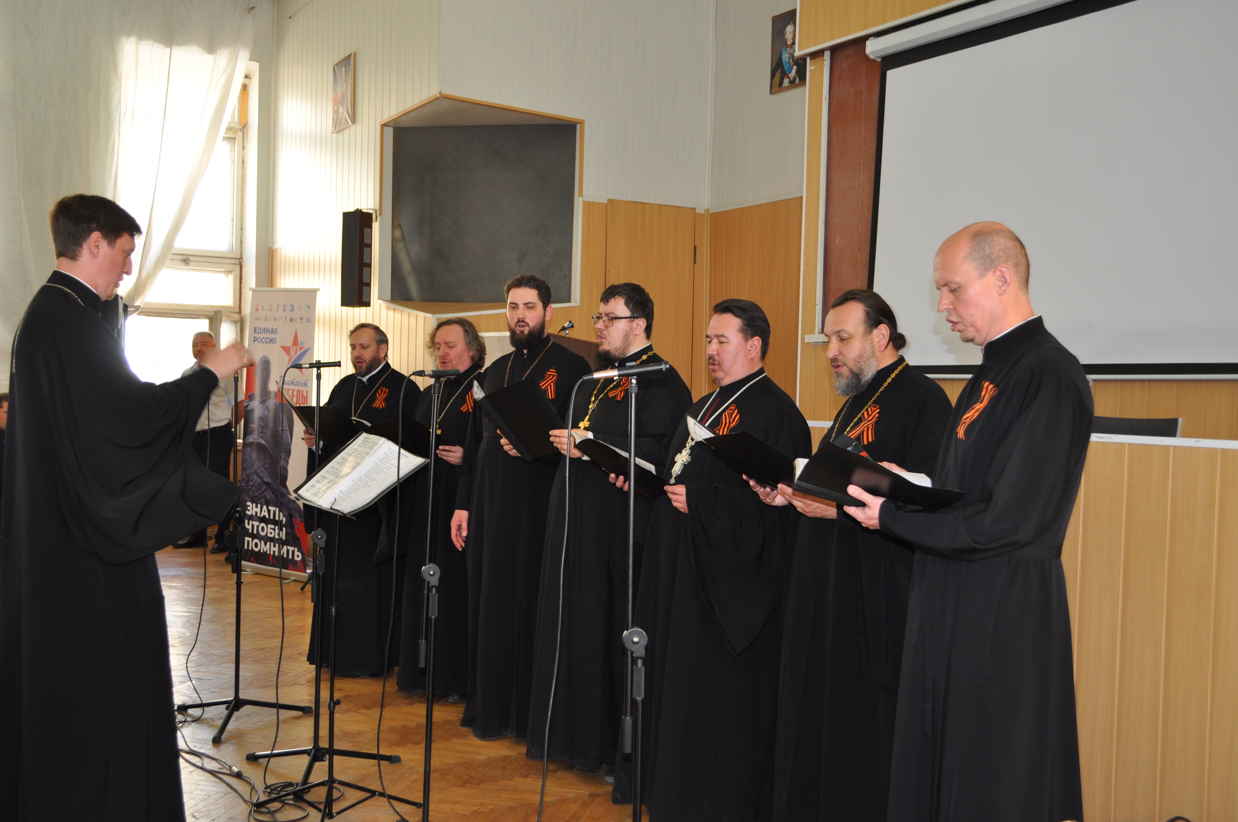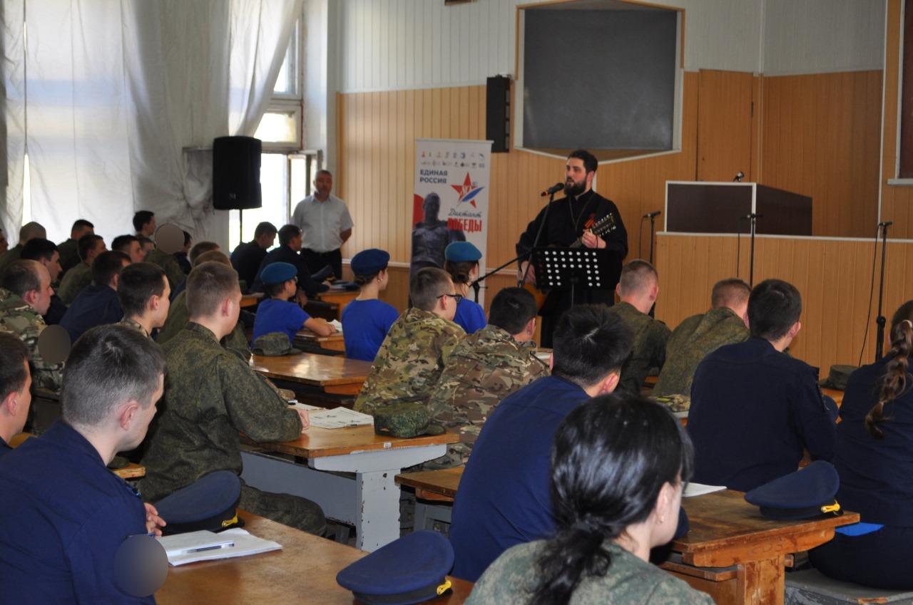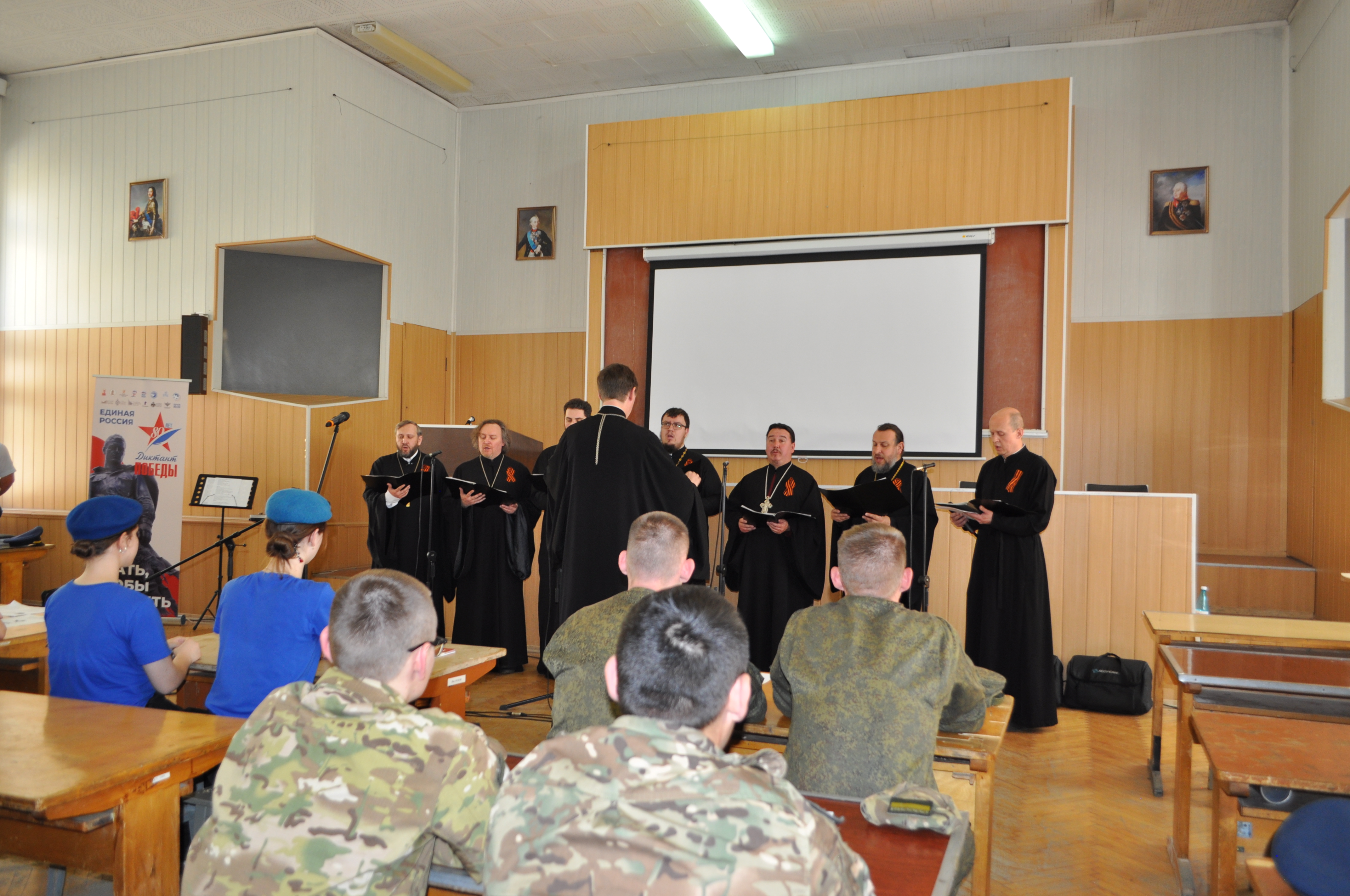 После диктанта для всех присутствующих духовенством были исполнены духовные и военно-патриотические песнопения. Продолжил выступление песнями военных лет Алексей Васяев. В завершение концерта исполнители поздравили всех присутствующих с праздником Пасхи и наступающим Днем 80‑летия Победы в Великой Отечественной войне, пожелав многая и благая лета!