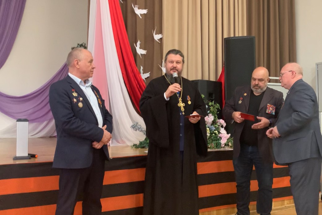 На церемонии награждения от «Боевого братства» протоиерею Михаилу Трутневу была вручена памятная медаль «Краснополянский рубеж 80 лет Победы в Великой Отечественной войне».