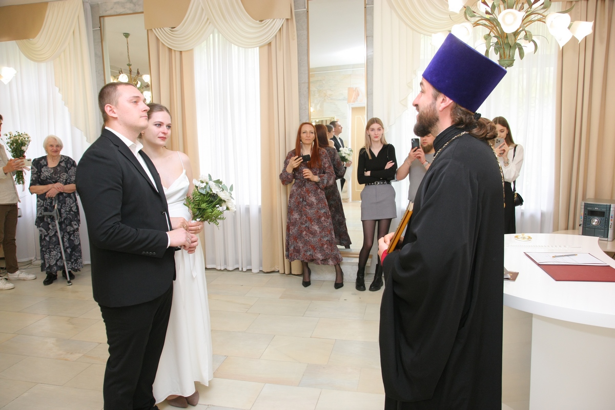 В центральном отделении ЗАГС в Долгопрудном клирик Георгиевского прихода иерей Рустик Мусин принял участие в торжественной церемонии