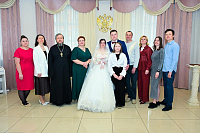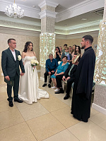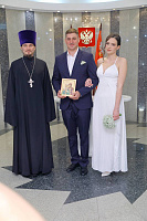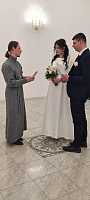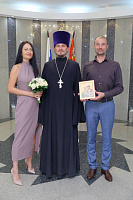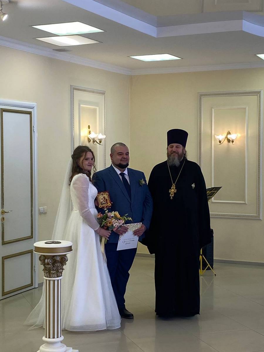 бракосочетания молодожёнов. После торжественного акта иерей Рустик поздравил сочетавшихся, напутствовал пастырским словом на