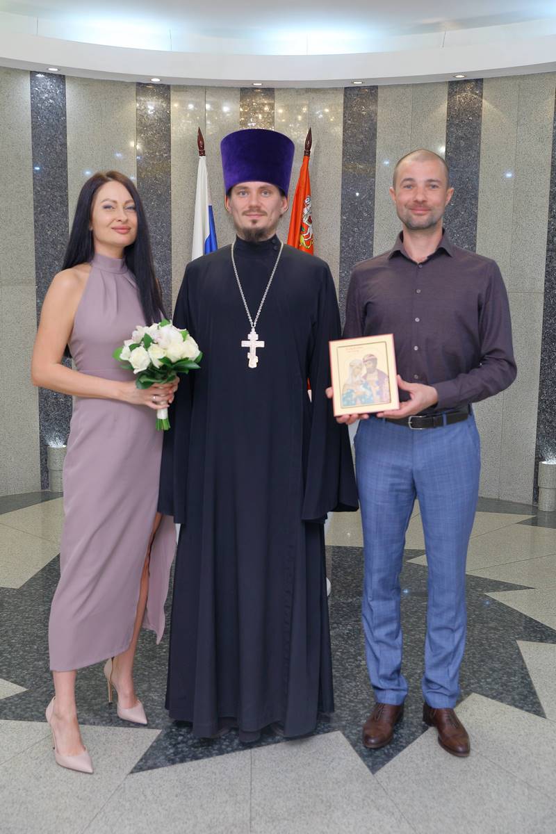 В Химкинском управлении ЗАГС председатель Комиссии по вопросам семьи, защиты материнства и детства Сергиево-Посадской епархии иерей Александр Насибулин принял участие в поздравлении и благословении молодожёнов во время государственной регистрации брака. После официальной церемонии иерей Александр обратился к молодожёнам с напутственными словами, благословил супругов иконой Божией Матери и вручил икону супругам на молитвенную память. Иерей Александр напомнил о том, что во время Антипасхи в храмах начинает совершаться Таинство Венчания после великопостного периода.