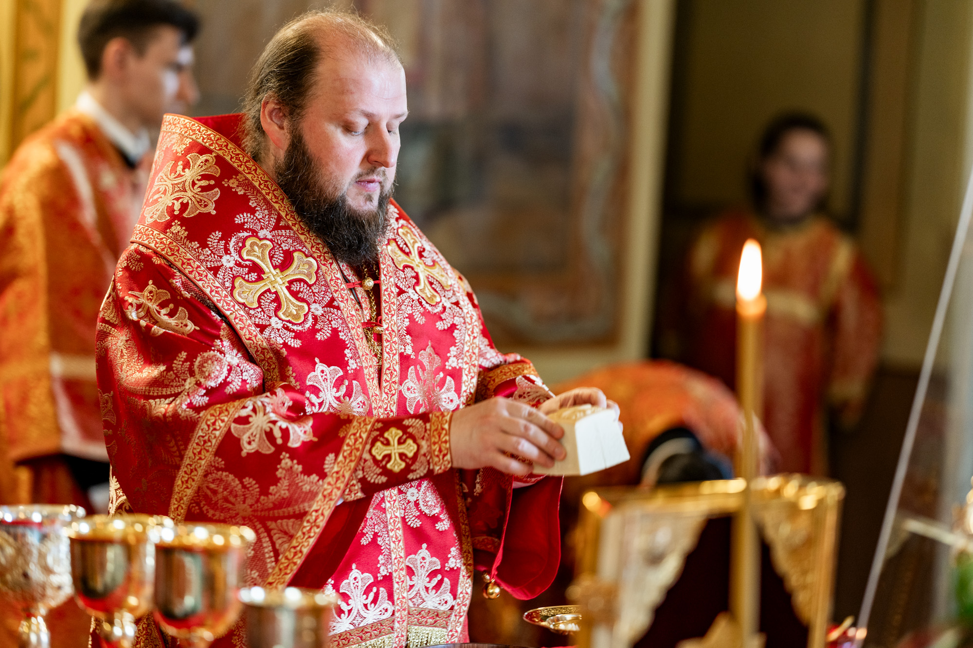 По окончании крестного хода архиепископ Аксий прочитал молитву на раздробление артоса.
