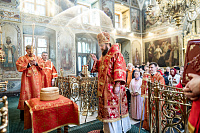 Его Высокопреосвященству сослужили клирики Троицкого кафедрального собора.