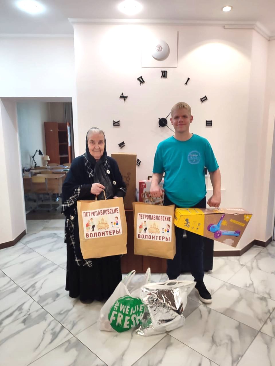 21 апреля приходом Петропавловского храма поселка Ильинский переданы куличи центру по уходу и реабилитации престарелых «Доброта».