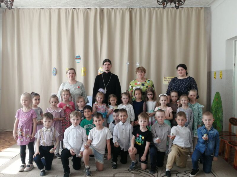 29 апреля в дошкольном отделении СОШ № 2 состоялся утренник, посвящённый Христову Воскресению. На мероприятии присутствовал клирик Троицкого храма иерей Феодор Новиков.