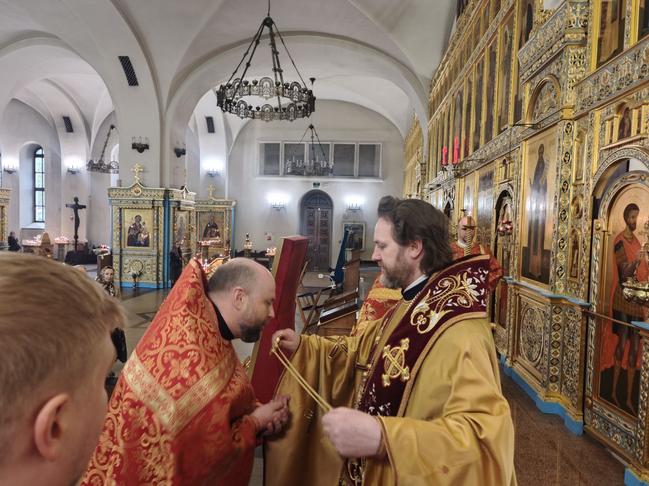 На малом входе, к празднику Святой Пасхи, протоиерей Сергий Еремин, благочинный Истринского округа, настоятель Георгиевского храма г. Дедовска, был удостоен права ношения наперсного креста с украшениями.