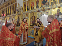 Владыке сослужили клирики епархии.