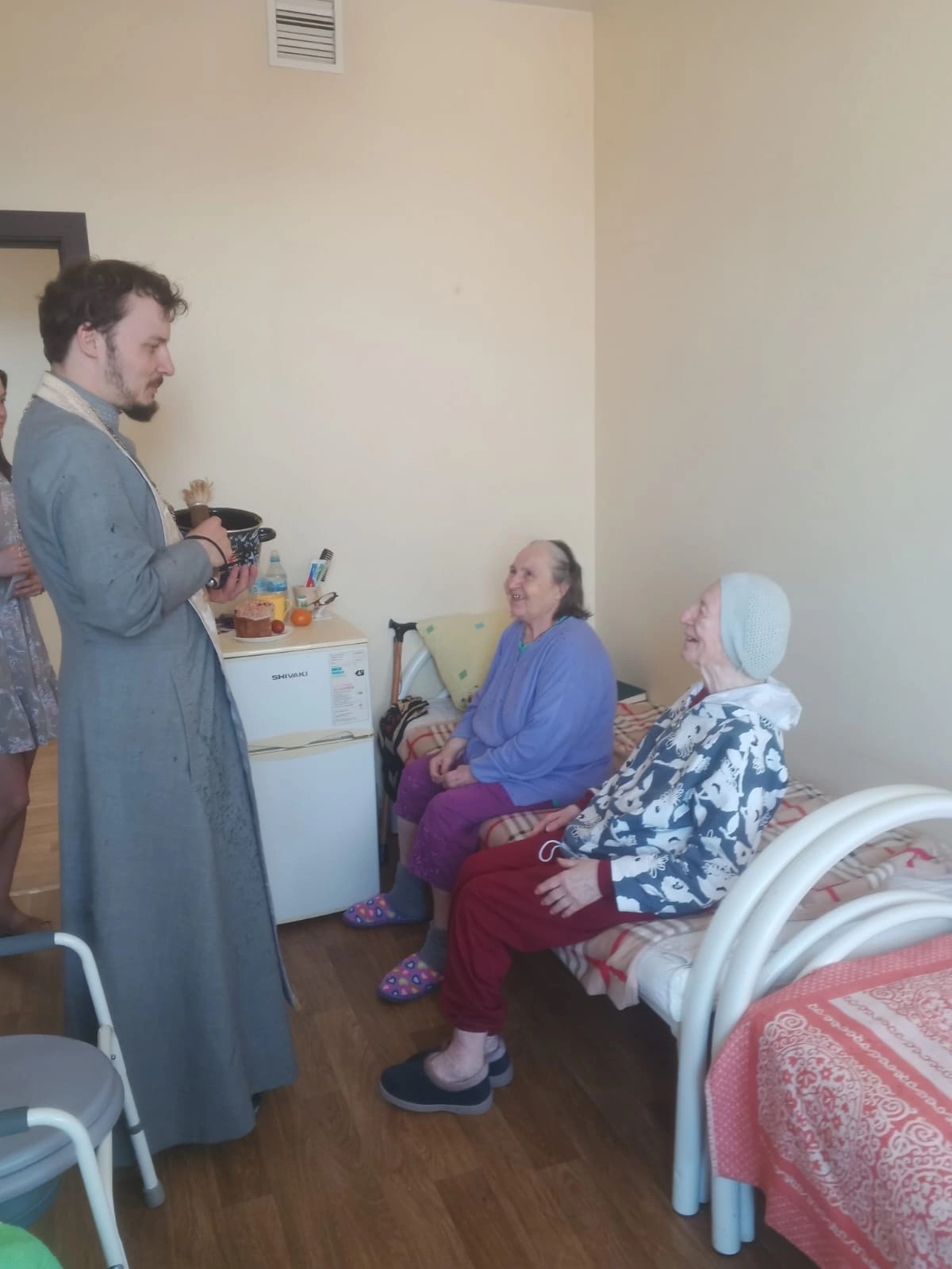 Пансионат для пожилых людей "Столетник" в день святой Пасхи принял у себя в гостях настоятеля Покровского храма села Никоновское иерея Алексея Твердова. По просьбе персонала и проживающих были освящены куличи и яйца для праздничного обеда. В рамках акции "Подари Пасху" всем желающим были подарены буклеты, напоминающие о главном смысле праздника, значении его традиций.