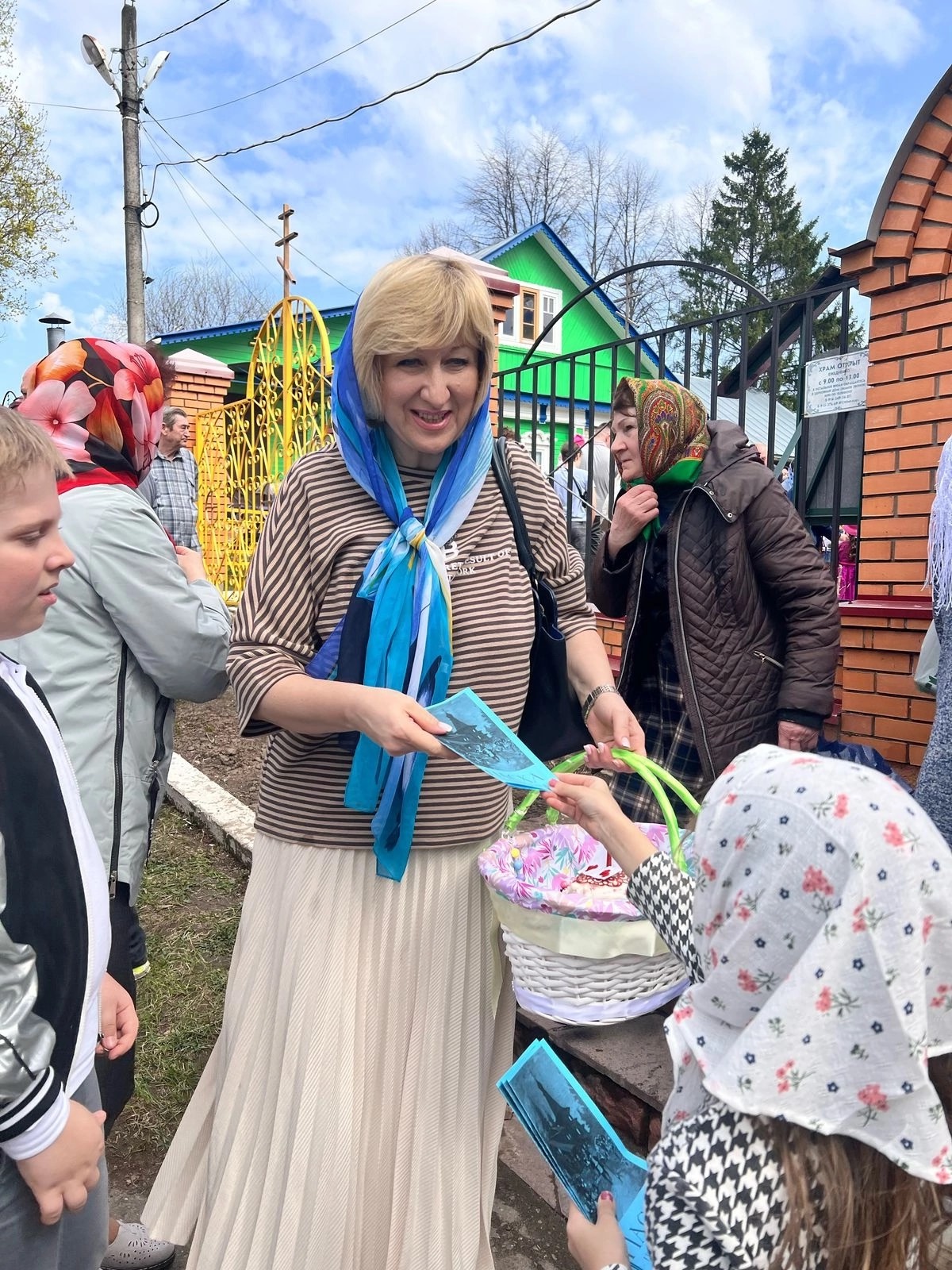 В Великую Субботу традиционные миссионерские акции прошли приходах благочиния. В Троицком храме с. Заворово прихожане-миссионеры рассказывали собравшимся о смысле праздника Пасхи, её традициях, с использованием катехизаторской литературы, подготовленной Синодальным миссионерским отделом.