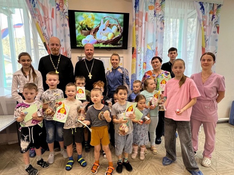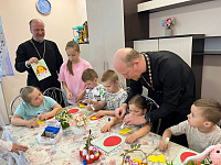 22 апреля ответственные в 1-м и 2-м Воскресенских благочиниях за церковную благотворительность и социальное служение протоиерей Евгений Егоров и иерей Сергий Пчелинцев вместе с воспитанниками воскресной школы Иоанно-Златоустовского храма села Новлянское посетили комплексный центр социального обслуживания и реабилитации «Воскресенский». Гости провели для ребят мастер-класс по изготовлению праздничной открытки и вручили подарки.