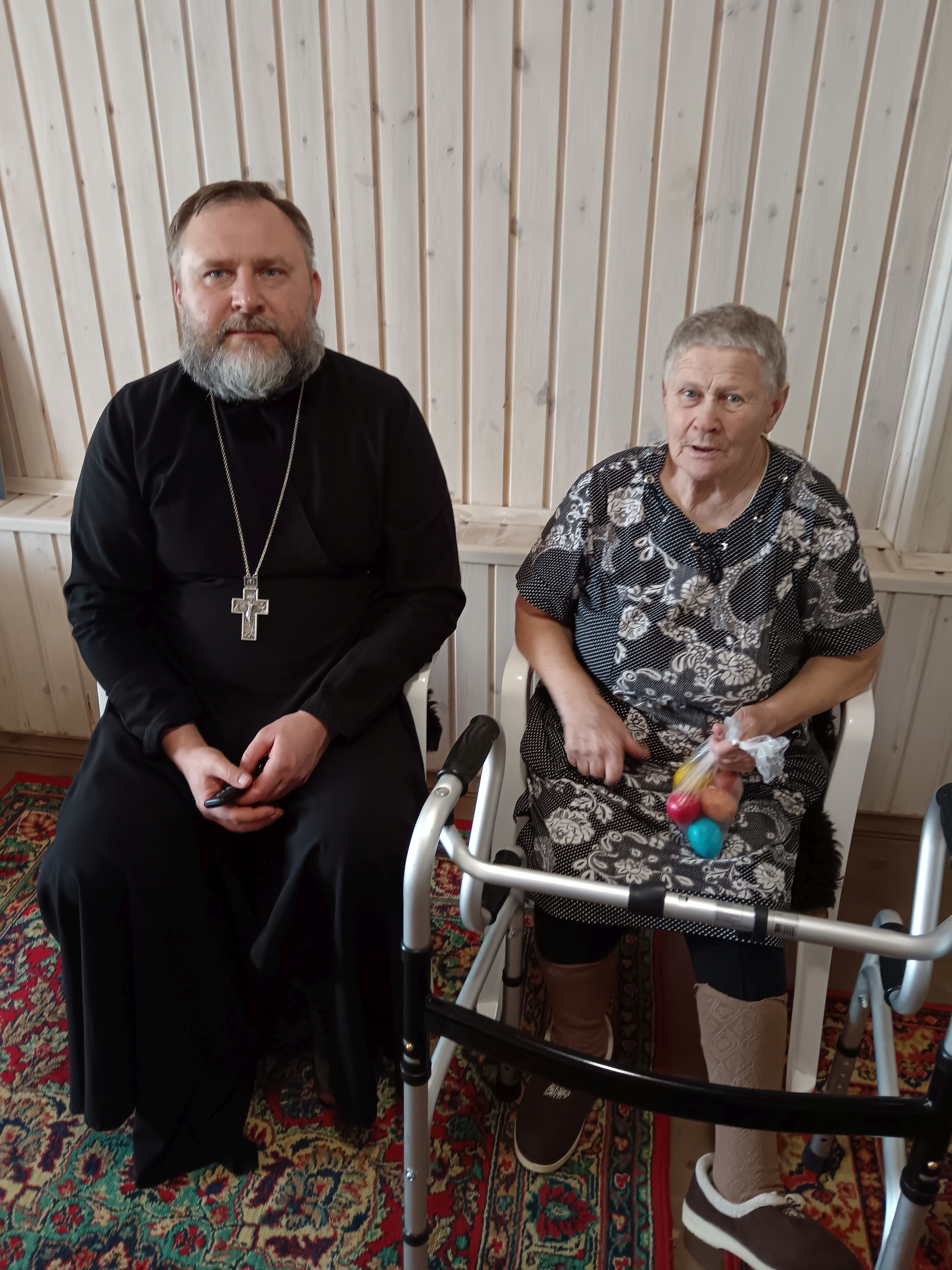 20 апреля настоятель Михаило-Архангельского храма села Карпово иерей Илия Дронов посетил маломобильную жительницу села и поздравил ее с праздником.
