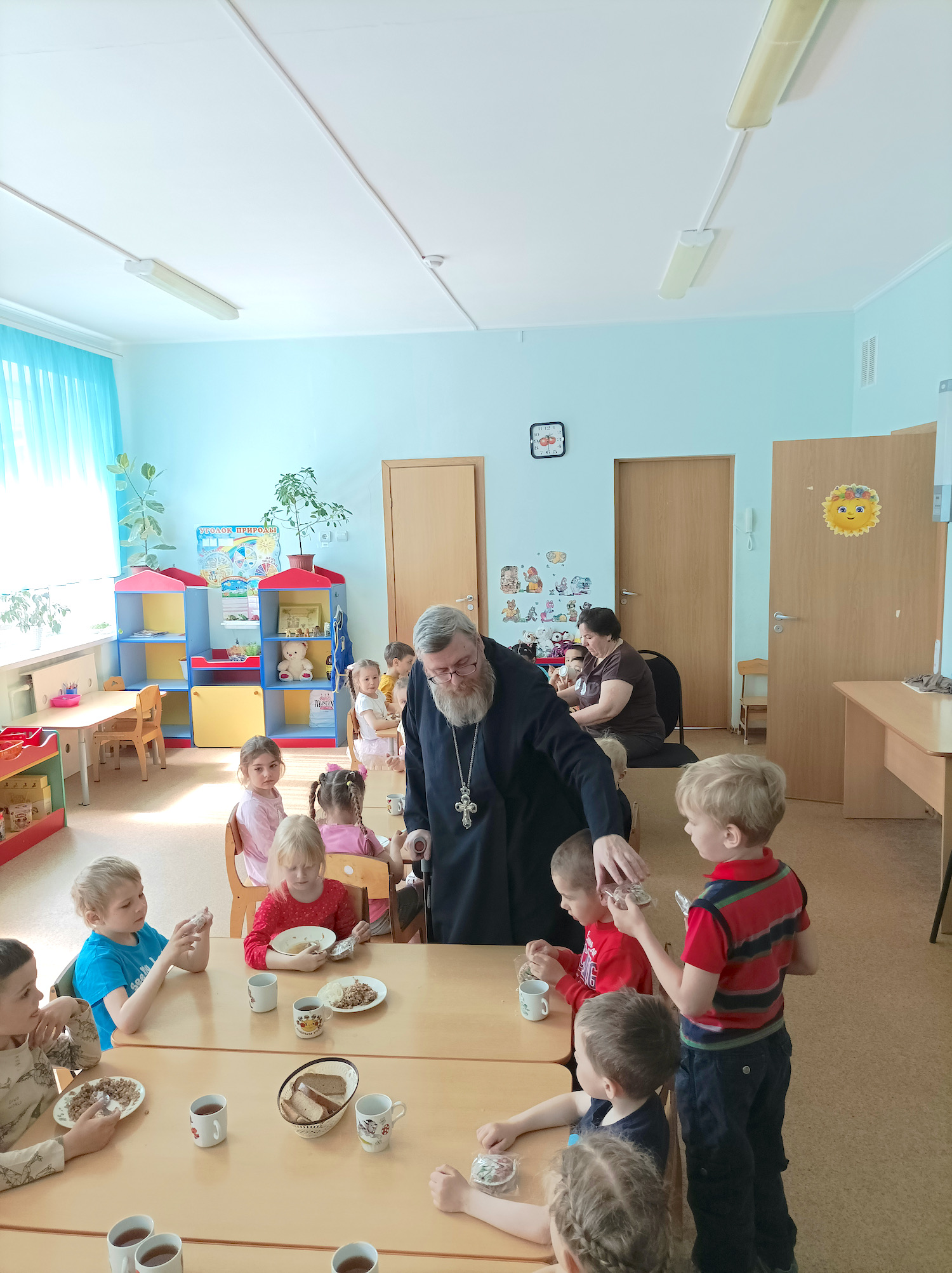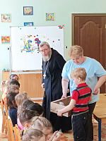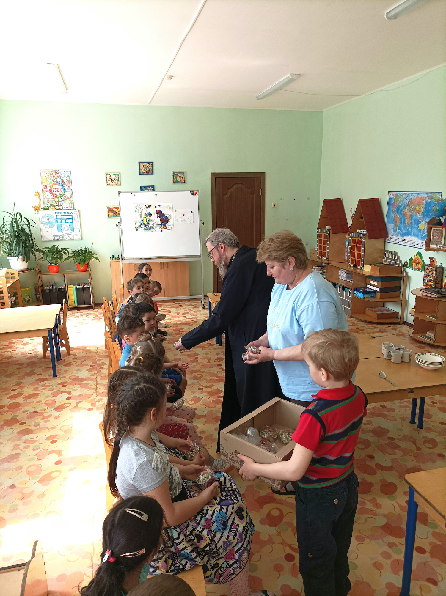 23 апреля настоятель Крестовоздвиженского храма села Татаринцево игумен Фаддей (Шавернев) посетил детские сады селСтарниково и Рыболово и вручил детям сладкие подарки.