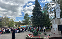 9 мая в г. Пушкино микрорайона Клязьма игумен Сергий (Амуницин) совершил литию у памятника погибшим воинам и обратился со словом ко всем присутствующим.