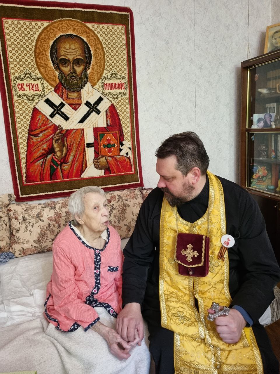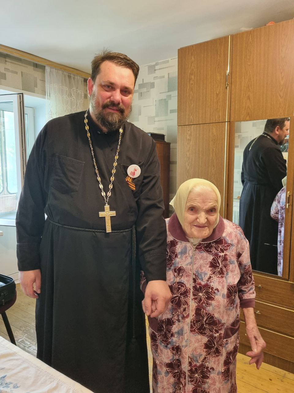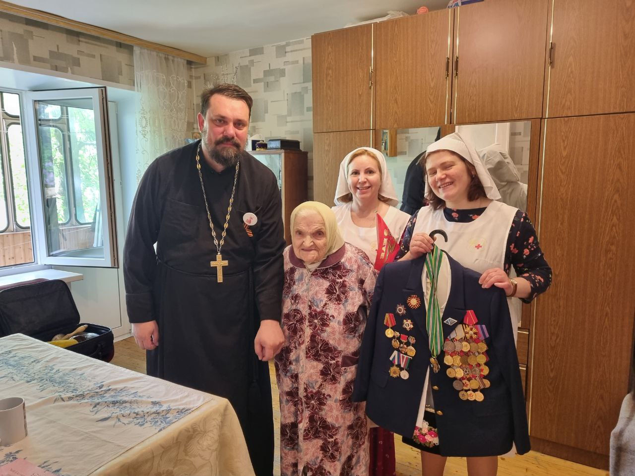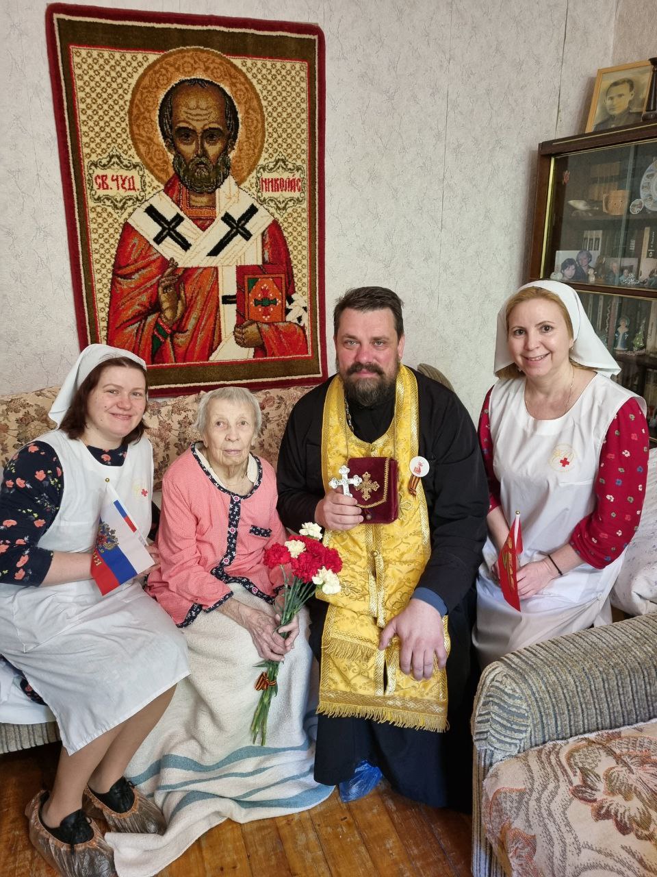 8 мая благочинный Жуковского церковного округа иерей Димитрий Денисов совместно с патронажной службой Жуковского филиала больницы святителя Алексея, расположенной на территории Пантелеимоновского прихода, посетили и поздравили ветеранов Великой Отечественной войны.