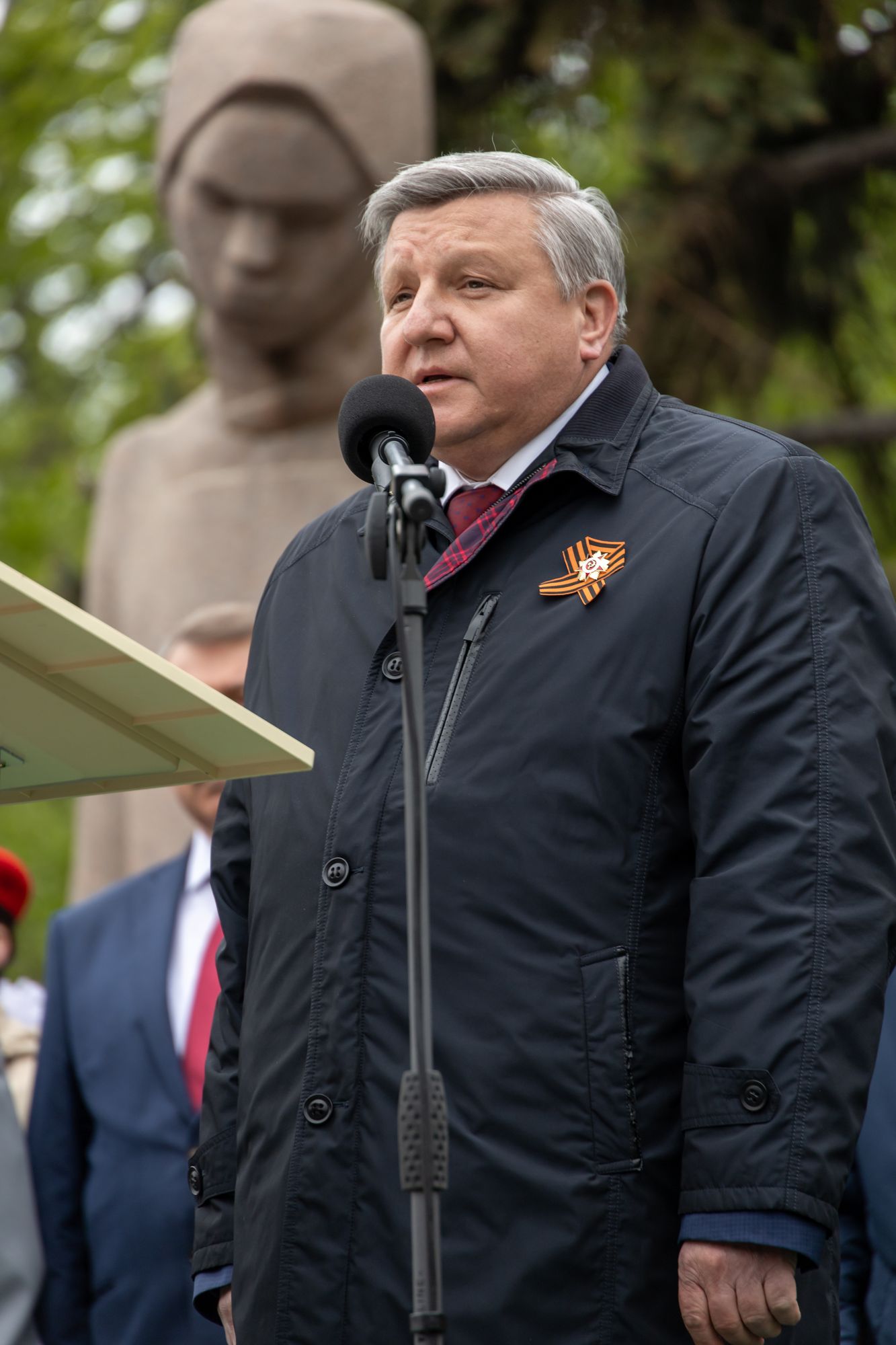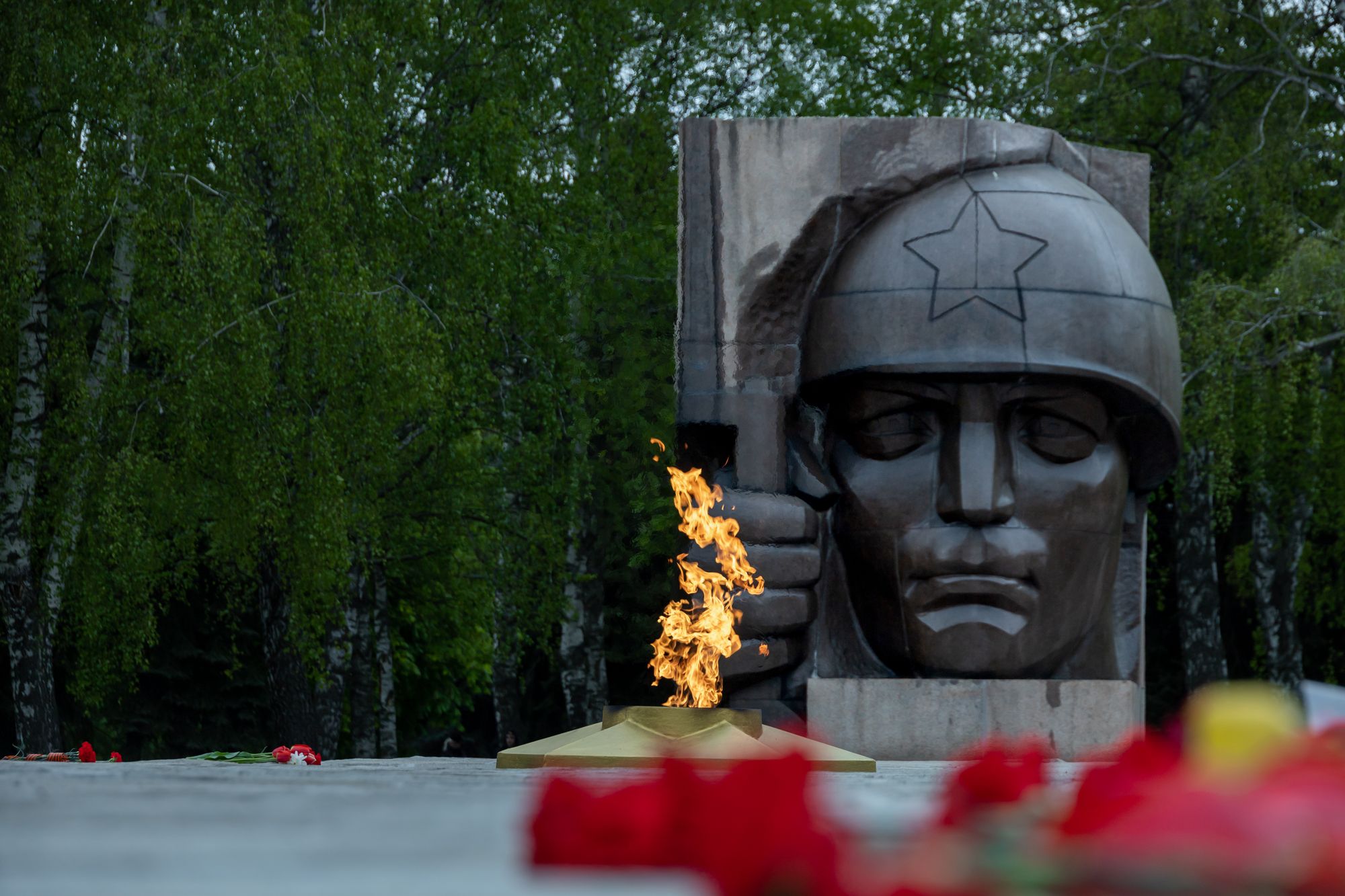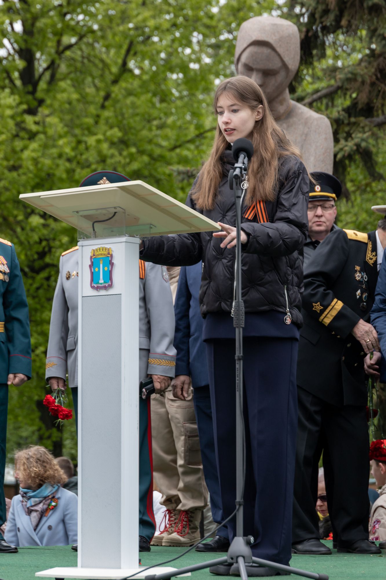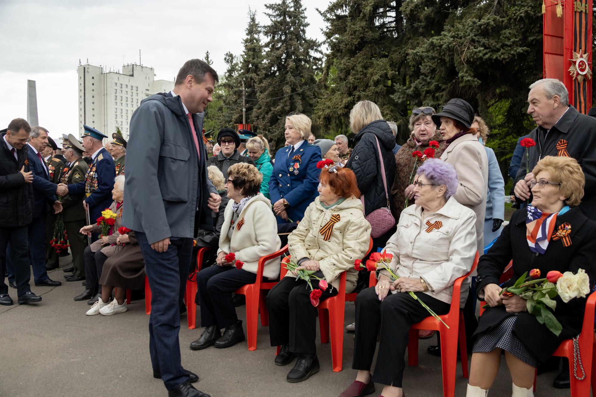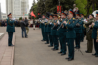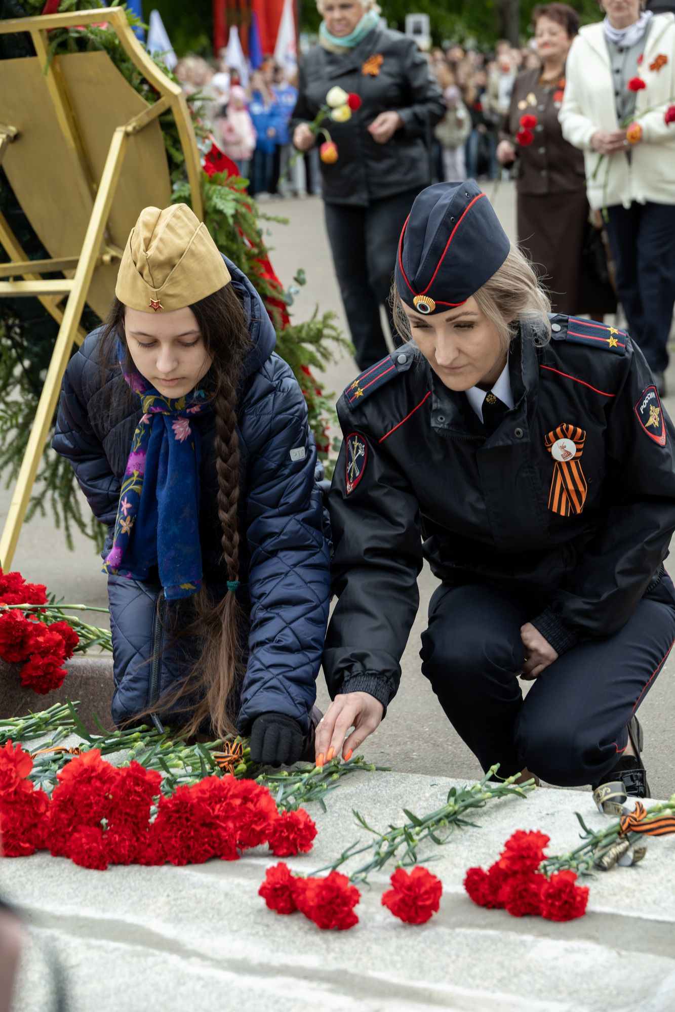 Все собравшиеся минутой молчания почтили память всех, кто отдал свои жизни за Родину, после чего состоялась церемония возложения венков и цветов к памятнику Победы.