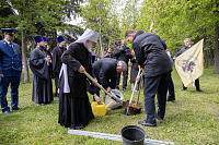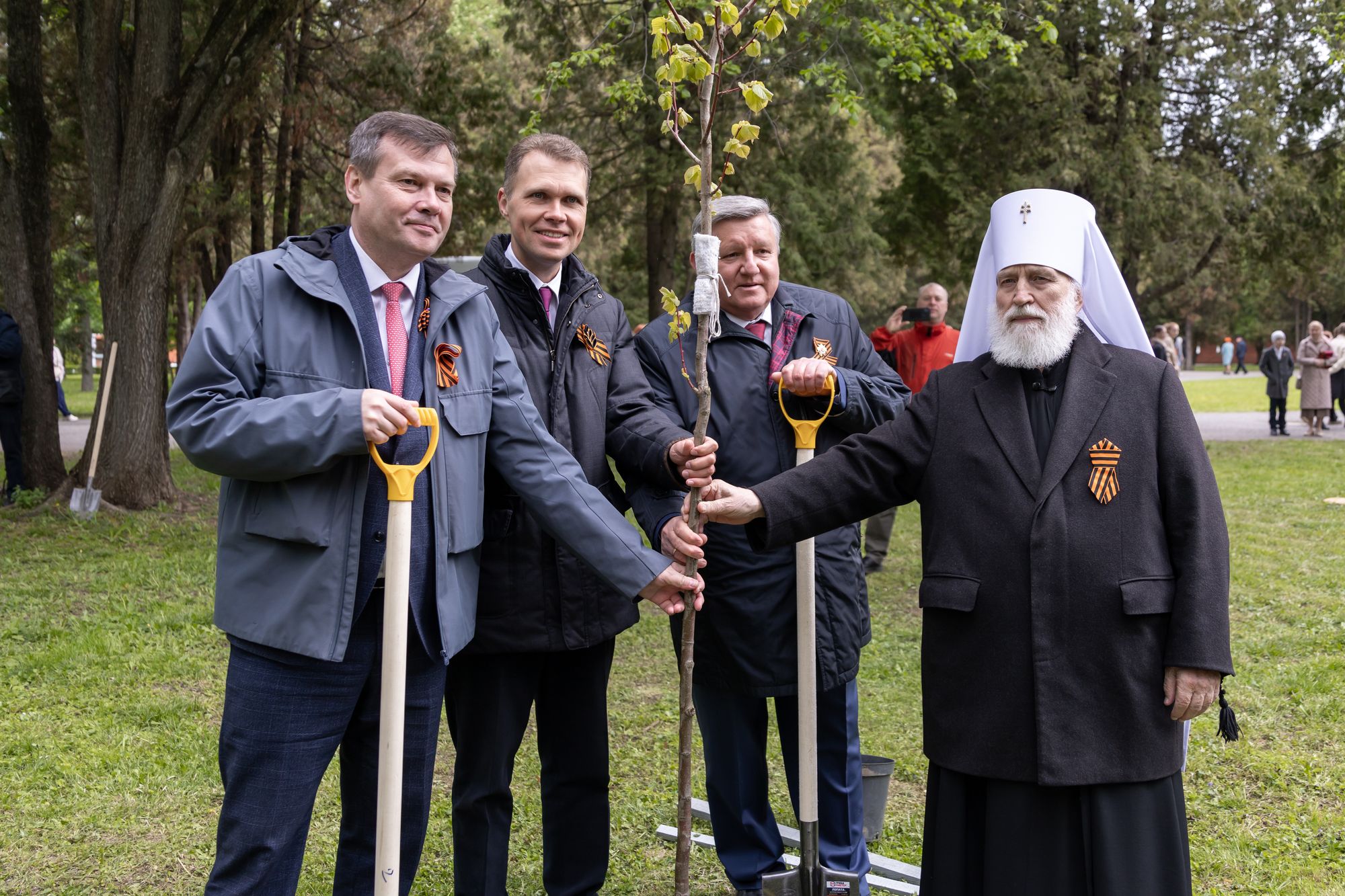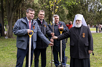 В память о почивших и в ознаменование 80-летия Победы Владыка Павел принял участие в высадке новых деревьев в Мемориальном парке.