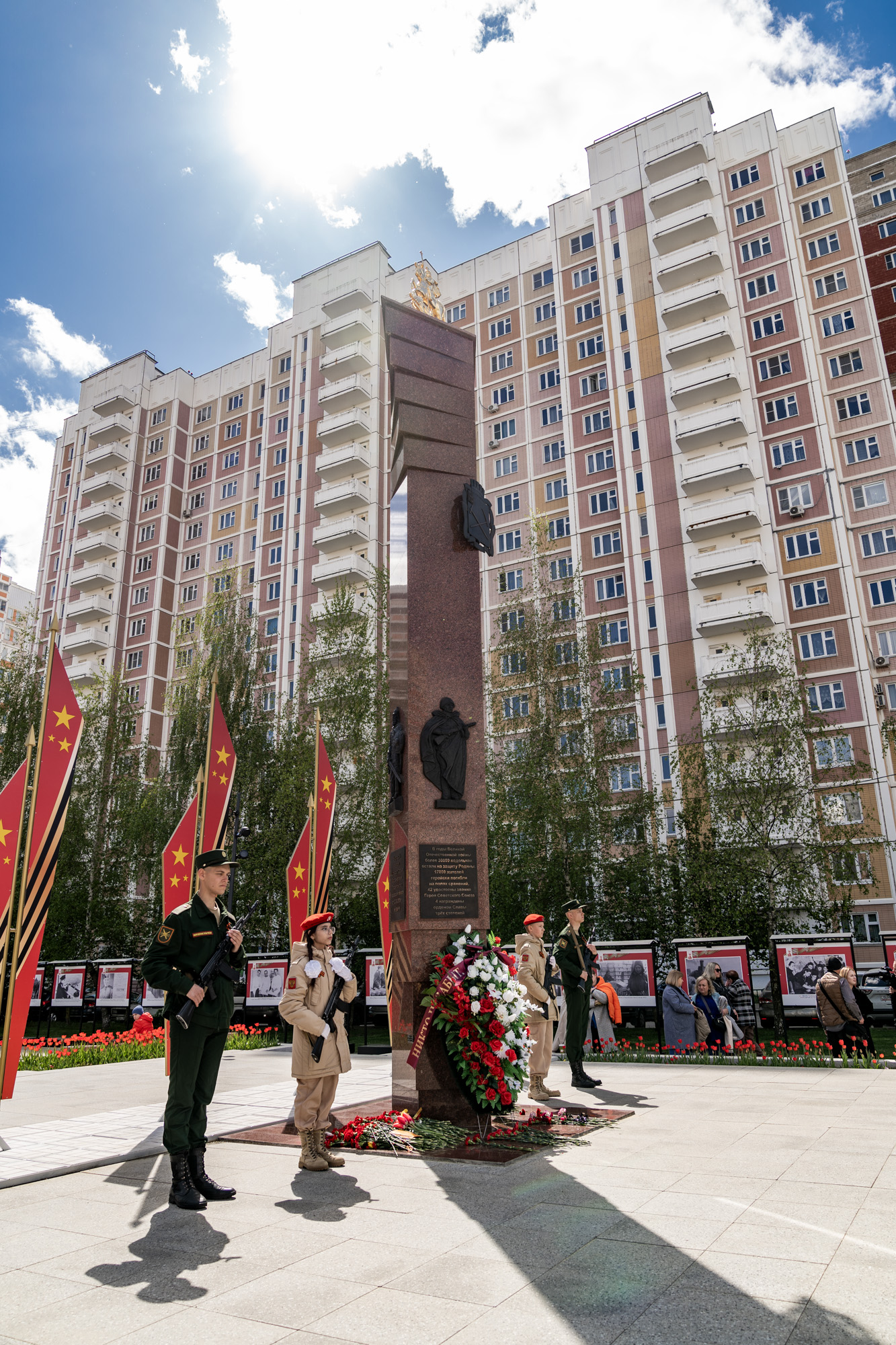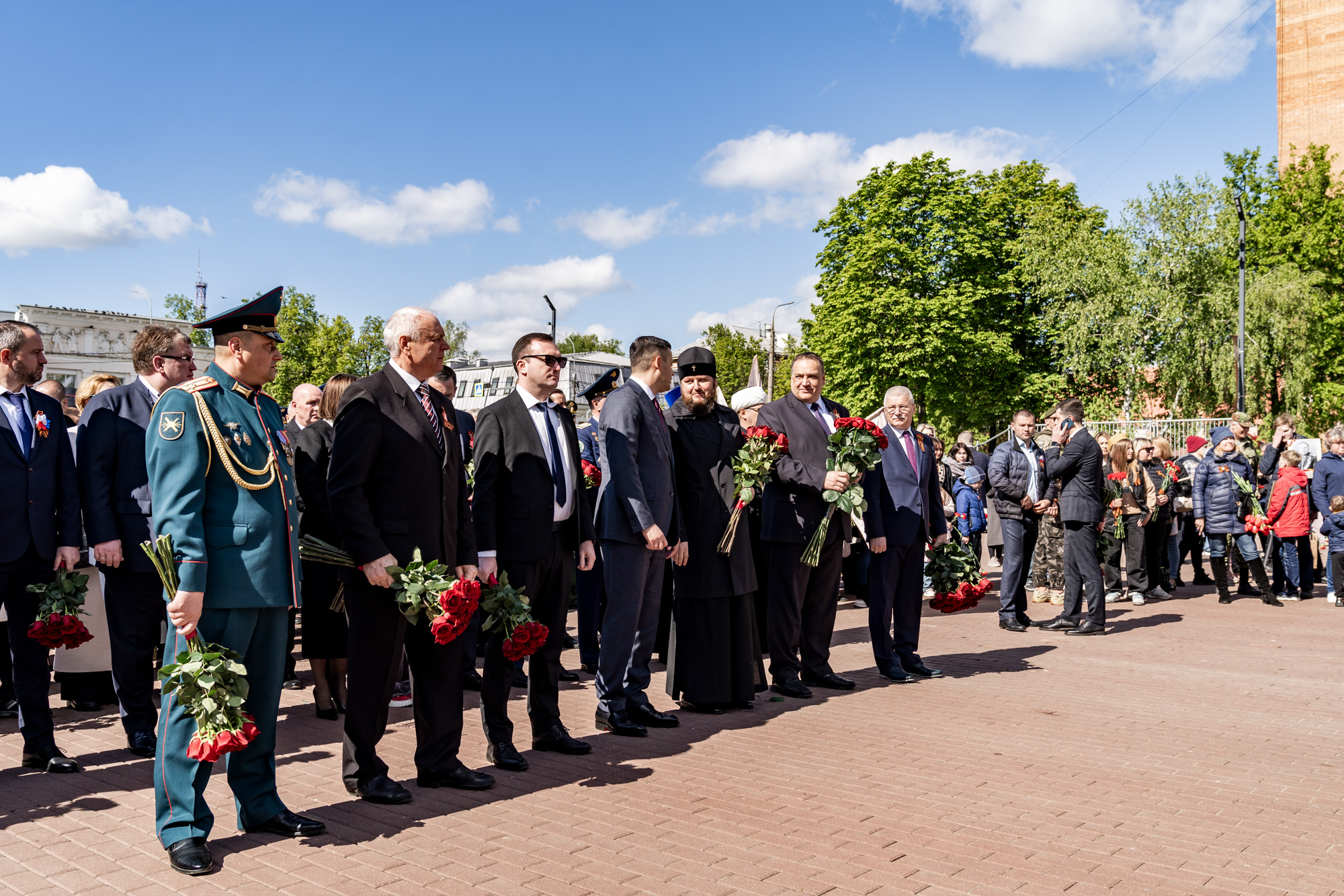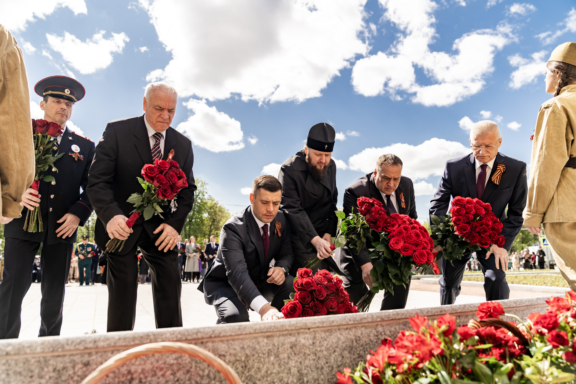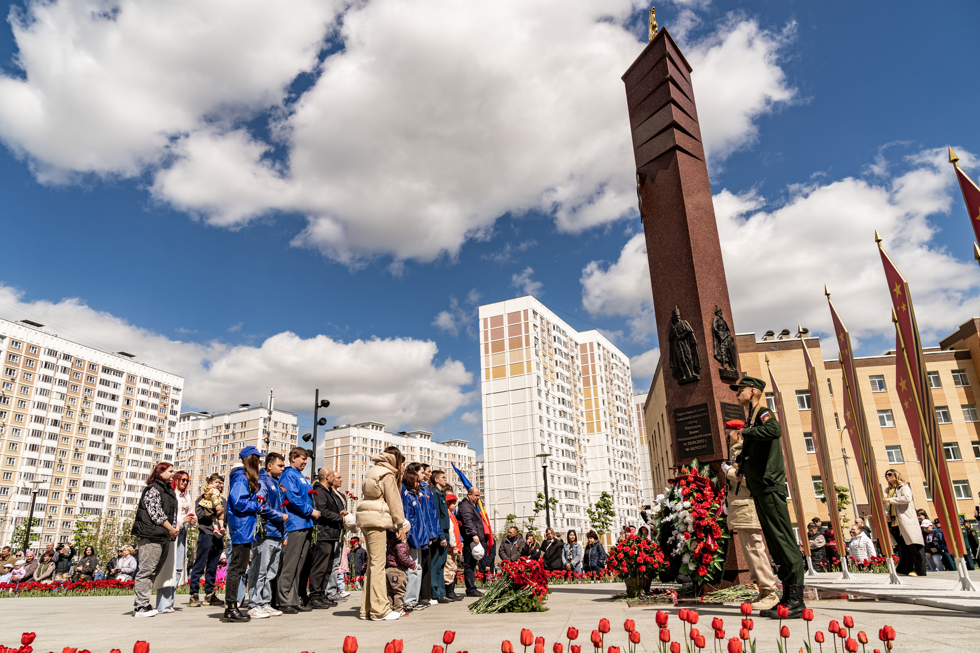 9 мая, в День Великой Победы, в Подольске прошло возложение цветов к мемориалам воинской доблести и славы. Участие в мероприятиях приняли ветераны, юнармейцы, представители трудовых коллективов и общественных организаций. Архиепископ Подольский и Люберецкий Аксий и глава г.о. Подольск Г.И. Артамонов возложили цветы к Вечному огню на площади Славы, памятникам воинам-интернационалистам и Подольским курсантам, а также к стеле «Населённый пункт воинской доблести». Также почтить память героев Великой Отечественной войны пришёл благочинный Подольского церковного иерей Серафим Покатилов.