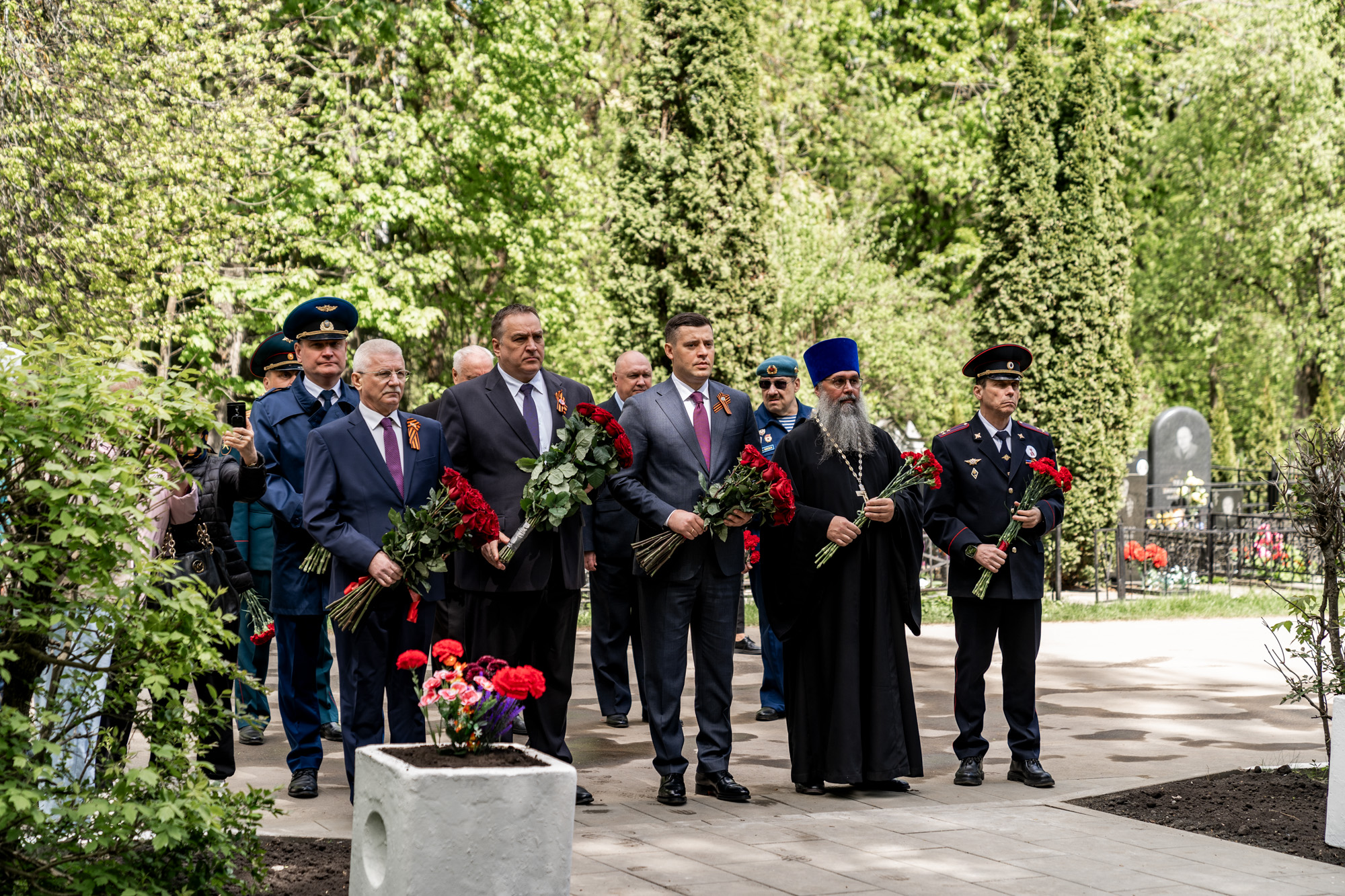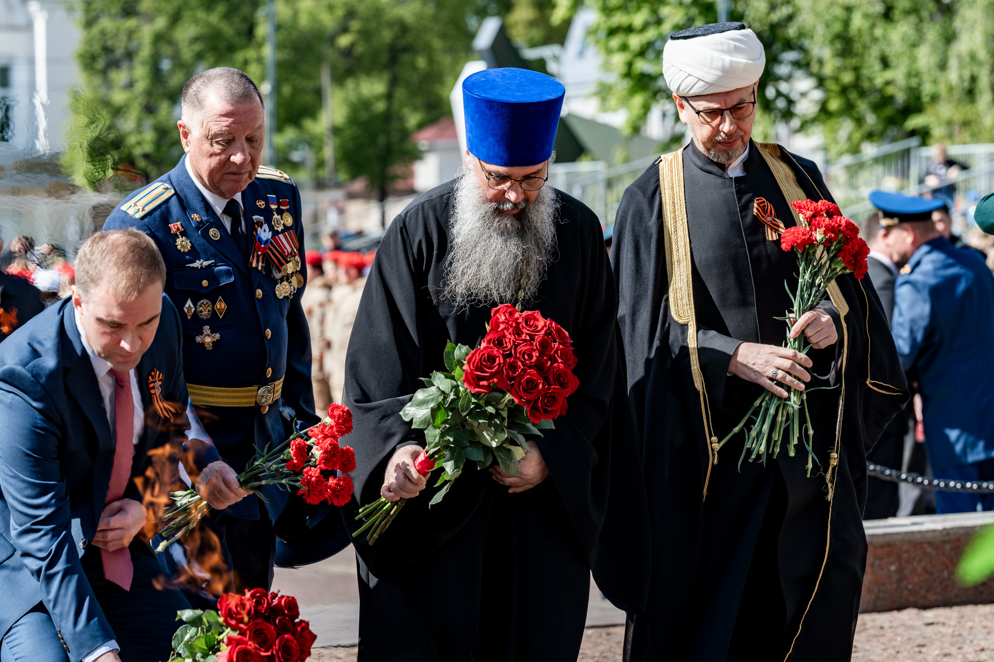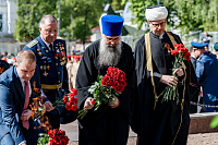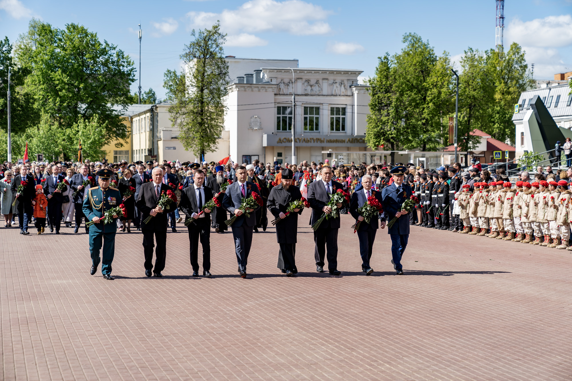 9 мая, в День Великой Победы, в Подольске прошло возложение цветов к мемориалам воинской доблести и славы. Участие в мероприятиях приняли ветераны, юнармейцы, представители трудовых коллективов и общественных организаций. Архиепископ Подольский и Люберецкий Аксий и глава г.о. Подольск Г.И. Артамонов возложили цветы к Вечному огню на площади Славы, памятникам воинам-интернационалистам и Подольским курсантам, а также к стеле «Населённый пункт воинской доблести». Также почтить память героев Великой Отечественной войны пришёл благочинный Подольского церковного иерей Серафим Покатилов.