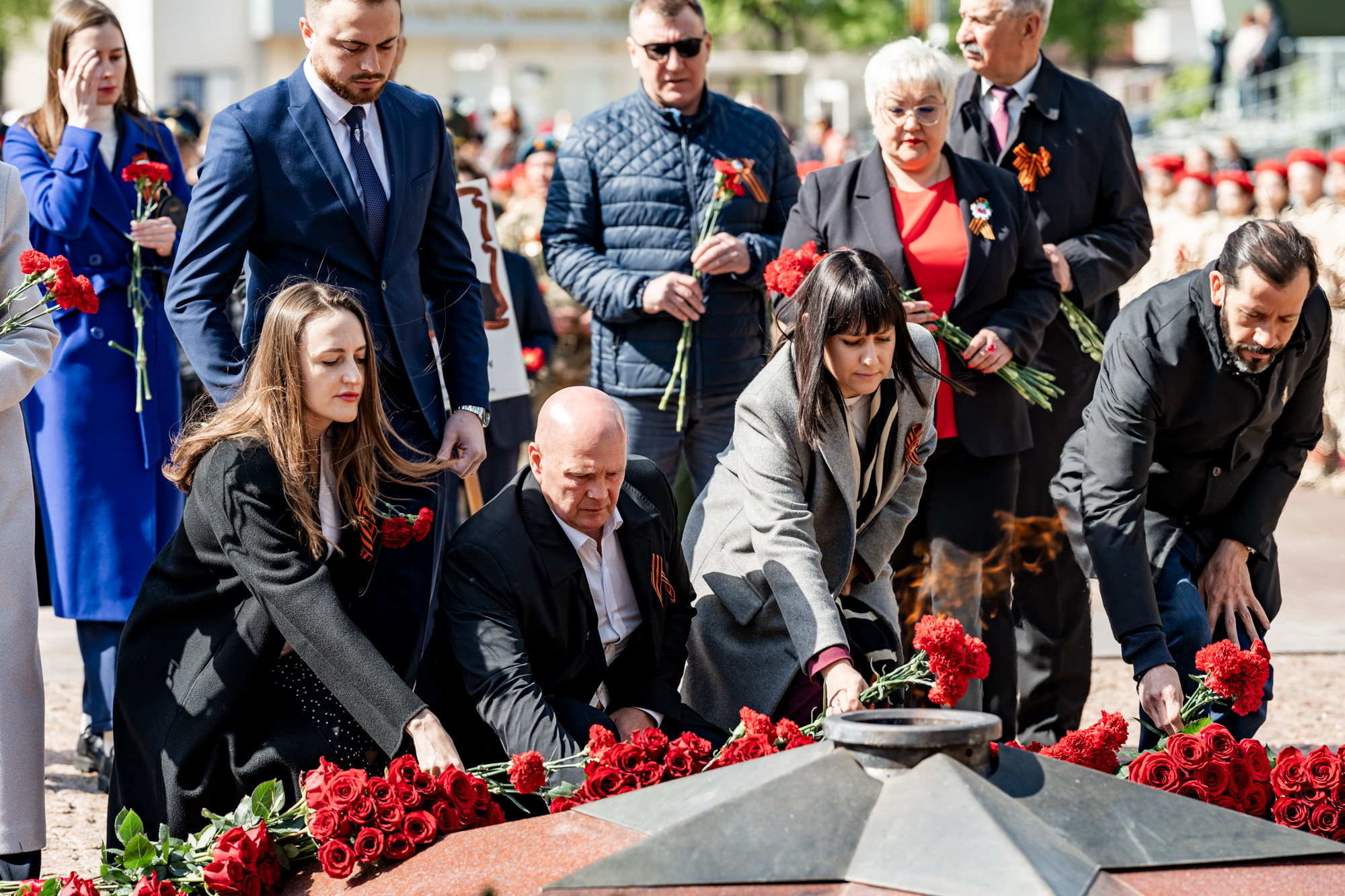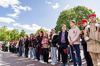 Возле Вечного огня прозвучали песни, посвящённые подвигу защитников Отечества, в исполнении хоровых коллективов г.о. Подольск. Кульминацией мероприятия стало общее исполнение «Дня Победы».