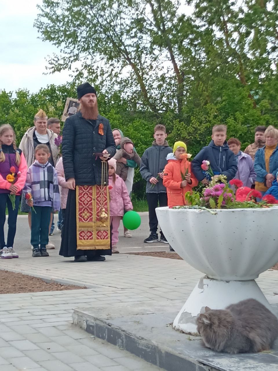 После молитвы отец Иоанн поздравил всех собравшихся с Днем Победы, призвал помнить и чтить память павших, быть достойными наследниками их героического подвига.