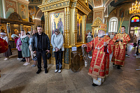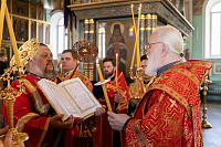 Богослужебные песнопения исполнил соборный хор под управлением Наталии Камышниковой.