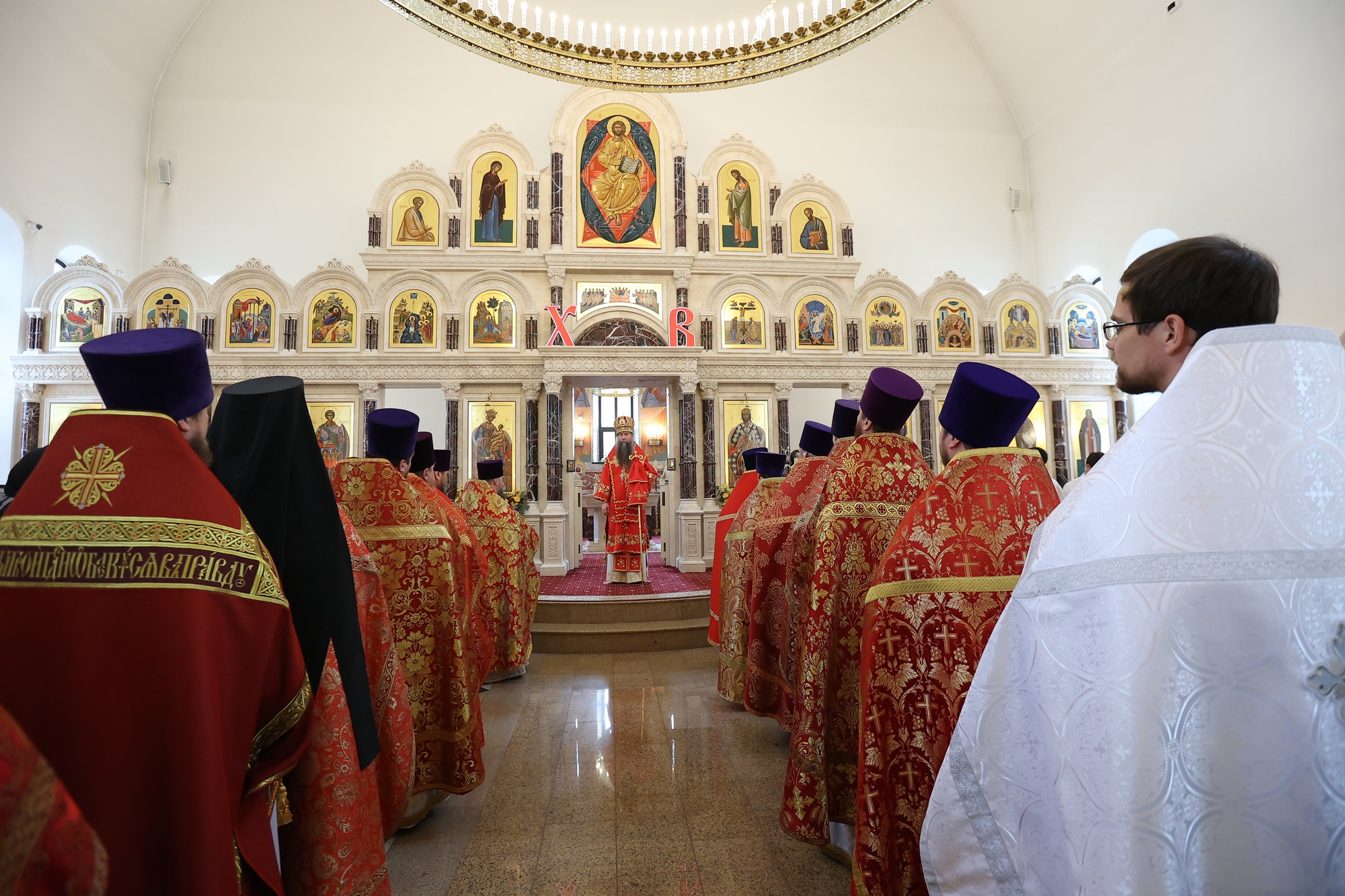 Его Преосвященству сослужили: секретарь Сергиево-Посадского епархиального управления, благочинный Ивантеевского церковного округа протоиерей Иоанн Монаршек; благочинные церковных округов: Солнечногорского – протоиерей Антоний Тирков, Долгопрудненского – протоиерей Андрей Хмызов; настоятель Георгиевского храма п. Голубое и Спасского храма п. Андреевка иерей Димитрий Полещук; приглашённое духовенство Сергиево-Посадской епархии.