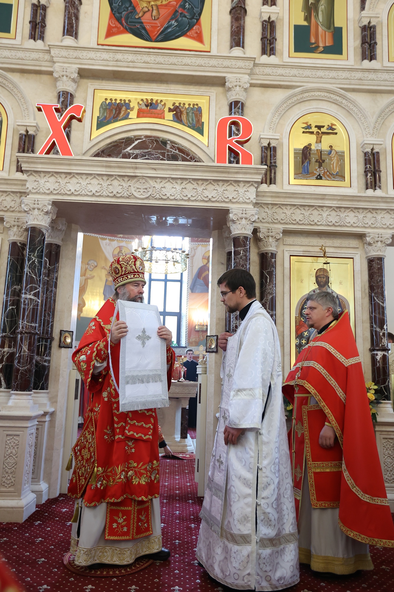 За Литургией владыка рукоположил в сан пресвитера с возложением набедренника клирика Преображенского храма г. Долгопрудного диакона Андрея Щербакова.