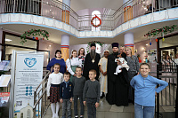 Затем епископ Кирилл в сопровождении сослужившего духовенства посетил Дом причта в п. Голубое, где встретился с руководством и сотрудниками Центра помощи семье и детям «Растим вместе», а также напутствовал и благословил подопечных приюта. Торжества завершились братской трапезой.