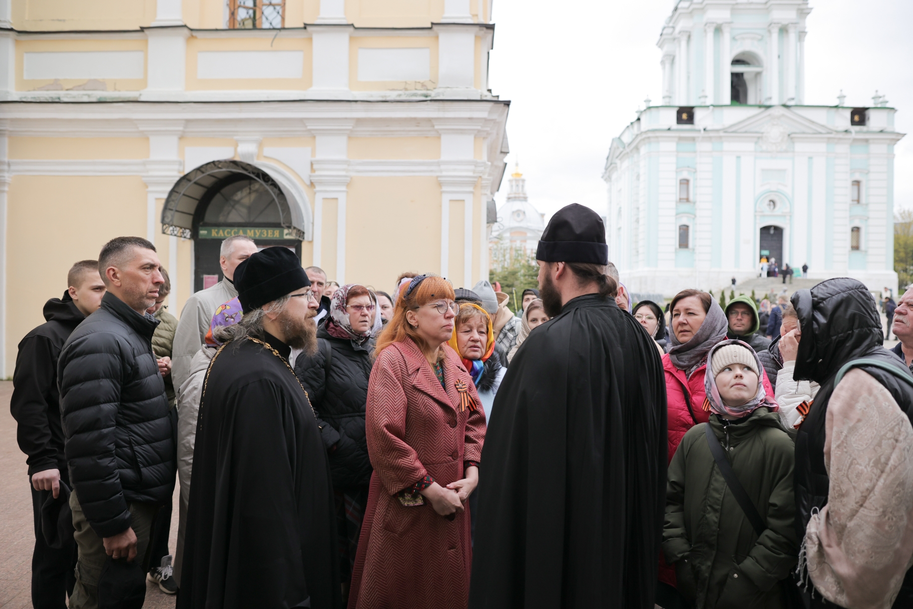 После этого паломники отправились в Свято-Троицкую Сергиеву лавру, посетили святые места, приняли участие в молебном пении и приложились к святым мощам преподобного Сергия. По благословению наместника Свято-Троицкой Сергиевой лавры братия монастыря, совершив молебен, благословили семьи участников СВО и обратились к ним с напутствием. Опытные экскурсоводы провели экскурсию «Воинская слава Троице-Сергиевой Лавры», которая раскрывает значение Троицкого монастыря и роль его насельников-фронтовиков в защите Отечества. Участники поездки помолились у могил лаврских фронтовиков архимандрита Кирилла (Павлова) и архимандрита Наума (Байбородина), возложили цветы.