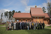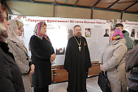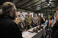 В начале паломнической поездки участники посетили выставку «Значение подвига воинов 1-й Ударной армии. Лаврские фронтовики», организованную в воинской палатке на территории храма преподобного Сергия Радонежского дер. Костино Пушкинского г.о. (Ивантеевское благочиние). На выставке были представлены информационные стенды и раскопанные поисковым отрядом «Память народа» артефакты времён Великой Отечественной войны. Всем участникам вручили пасхальные подарки, иконы и молитвословы с молитвами о воинах.