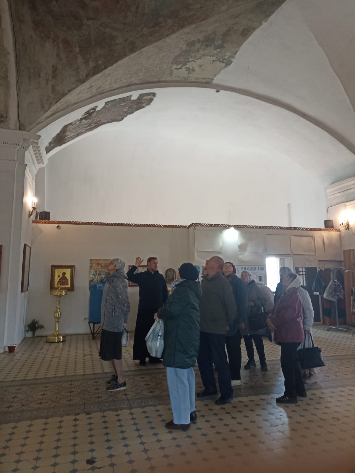 11 мая Паломнический центр Коломенской епархии организовал поездку по храмам Белоомута. В Преображенском храме гостей встретил иерей Владимир Келин, который показал сохранившиеся росписи и святыни храма.