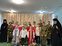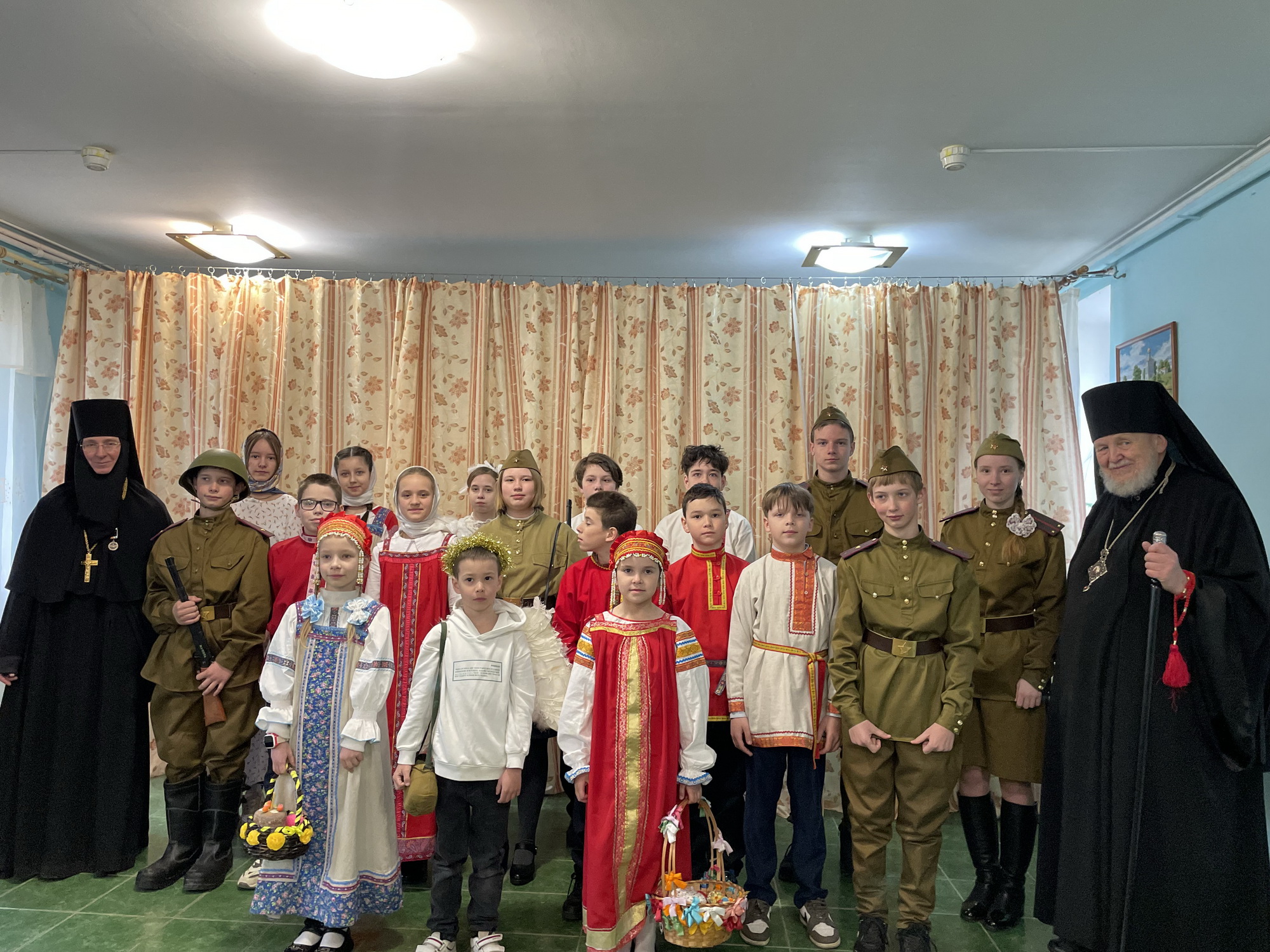 Затем состоялось выступление воспитанников и преподавателей воскресной школы с музыкальным спектаклем, посвящённым празднику Пасхи и 80-летию победы в Великой Отечественной войне.