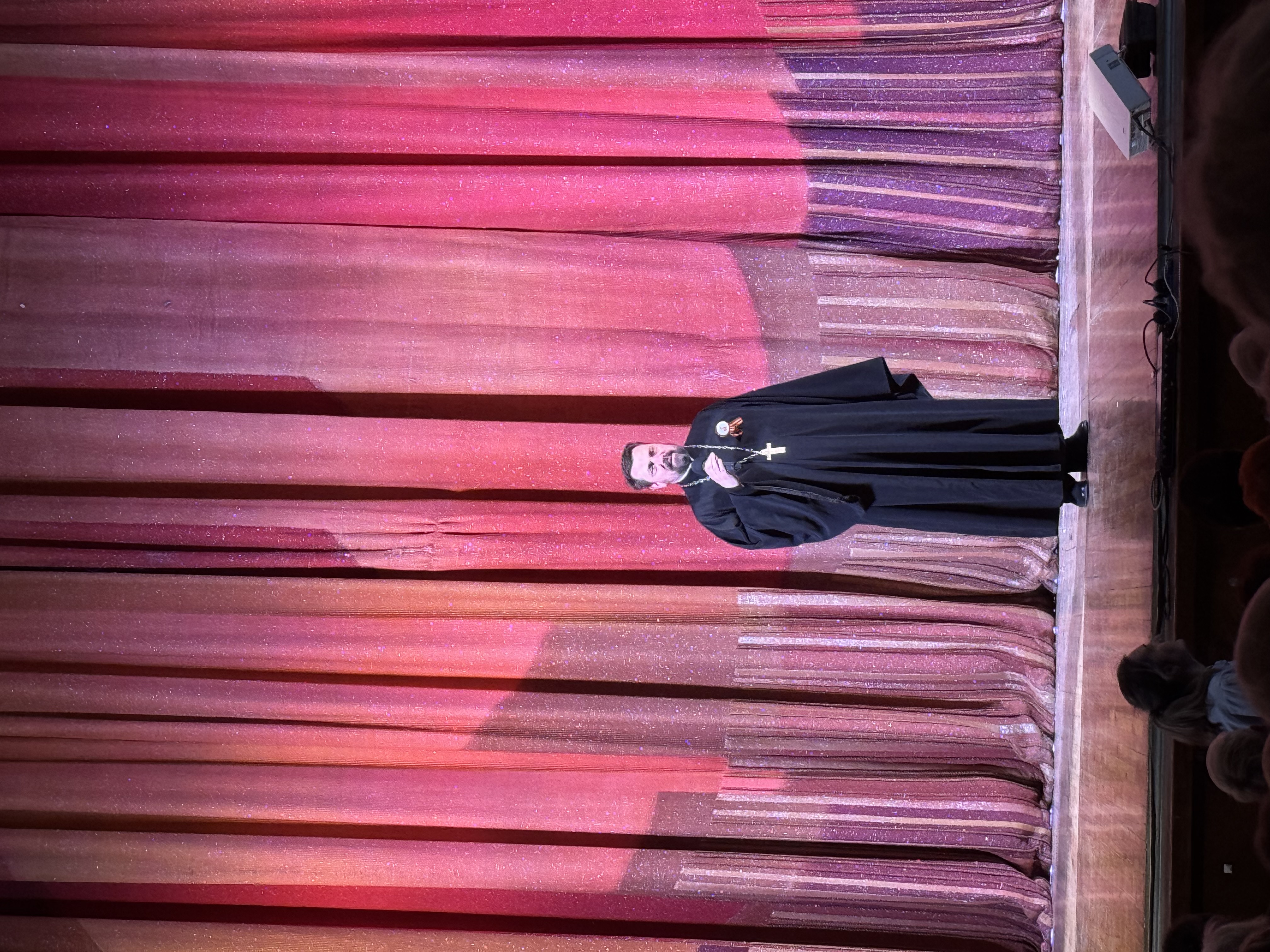 С вступительным словом к собравшимся зрителям и участникам концерта обратился благочинный Жуковского церковного округа иерей Дмитрий Денисов.